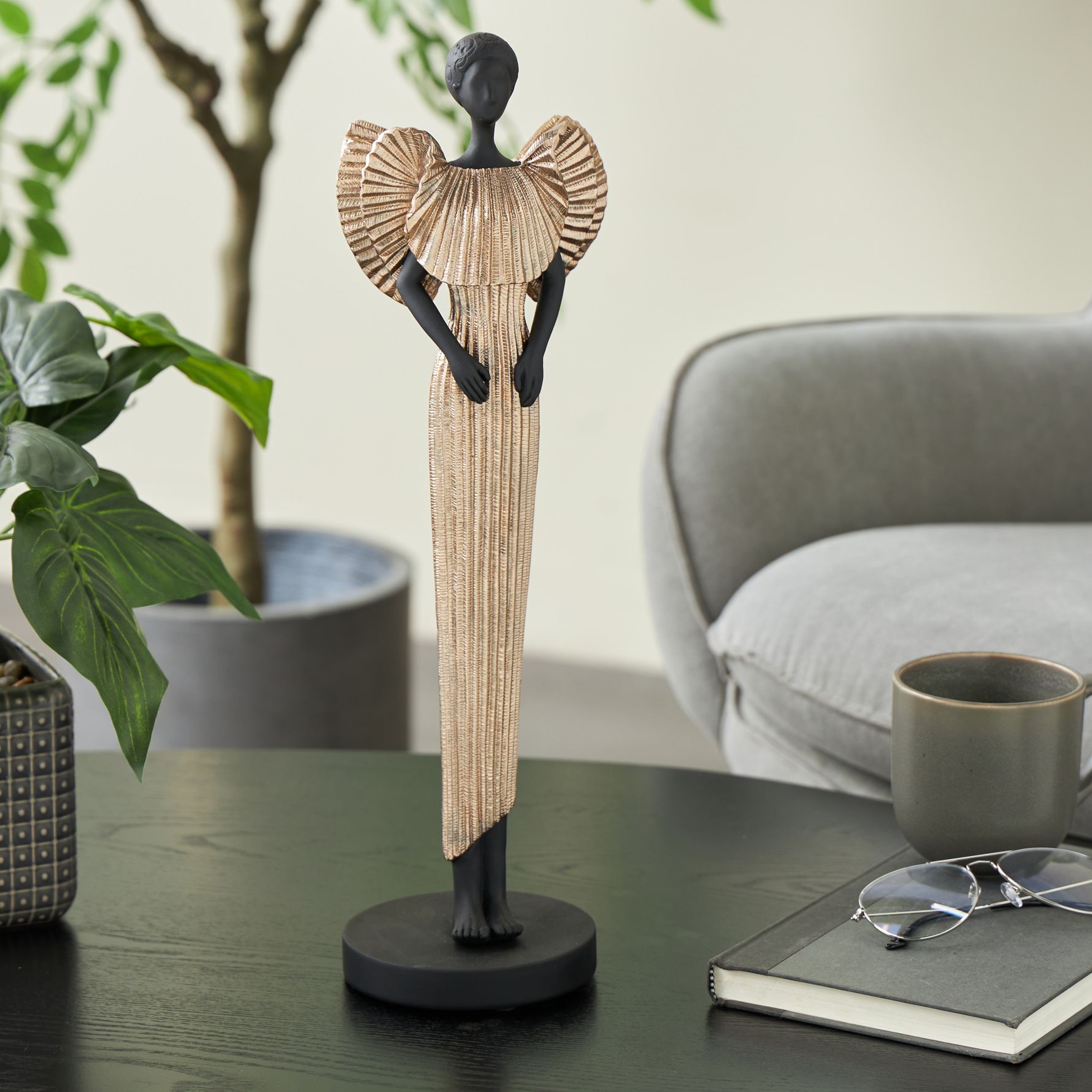 Black Polyresin Traditional Sculpture, 5" x 5" x 17"