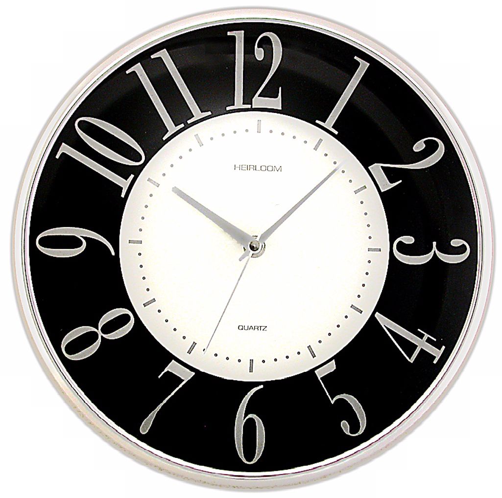 With second hand sweep, this Quartz clock keeps time with a streamlined style. The rim, hands and Arabic numerals are silver toned which looks great with the black clock face. The front is protected by double glass, not plastic. Packaged in a box with clear plastic front, this will make the ideal gift. Batteries not included.
