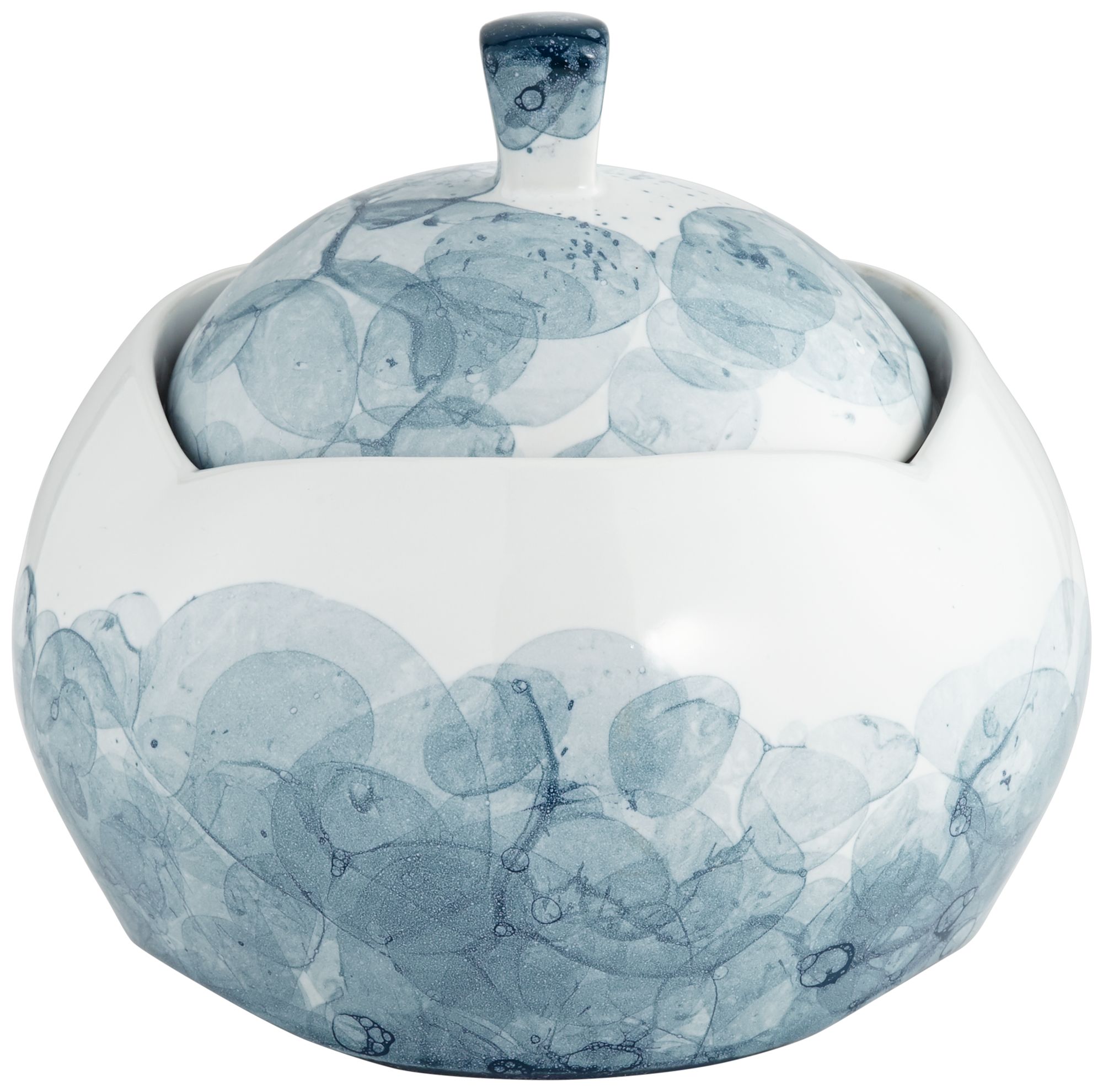 Blue and White 8 1/4" Wide Round Ceramic Storage Jar