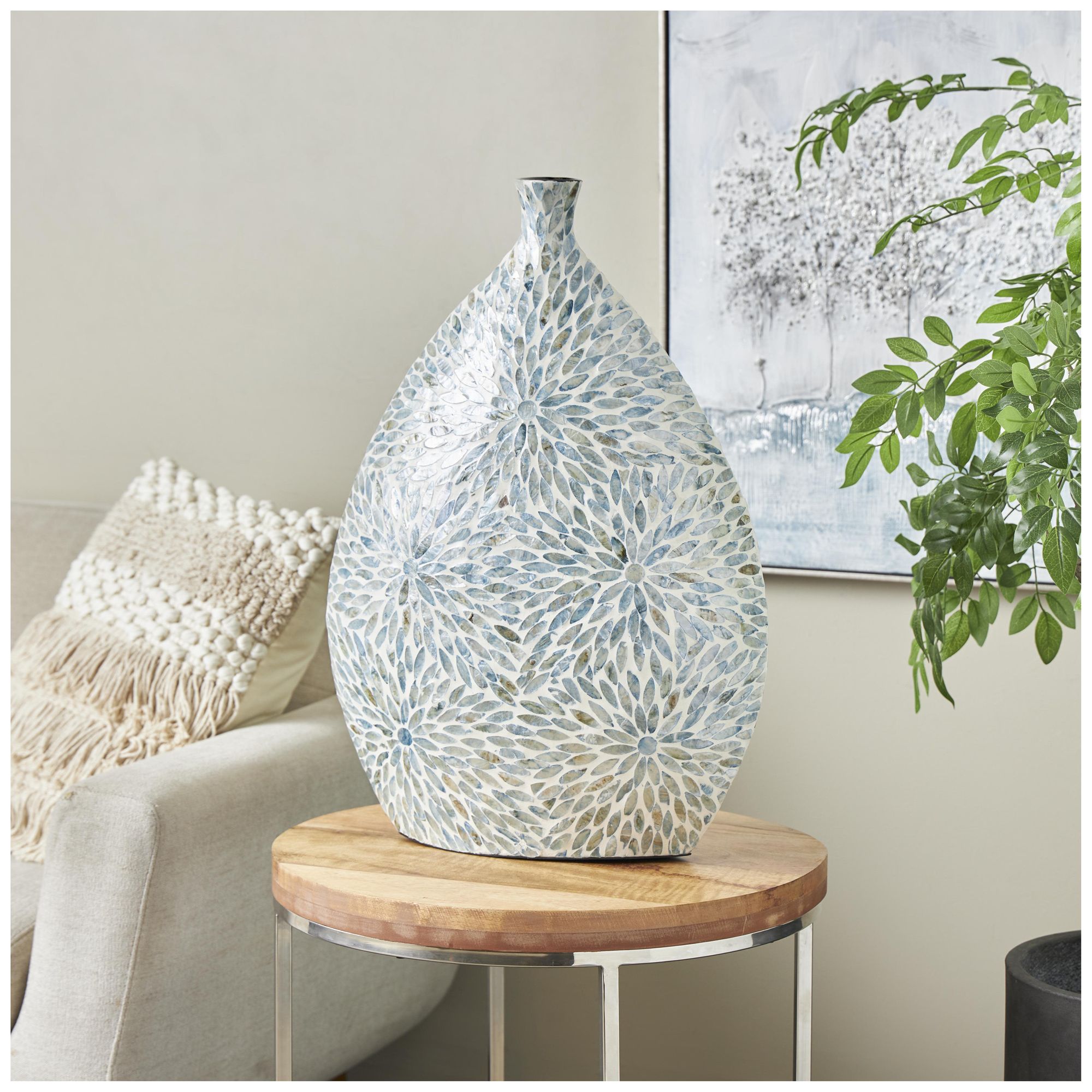 Blue Mother of Pearl Shell Contemporary Vase, 17" x 8" x 24"