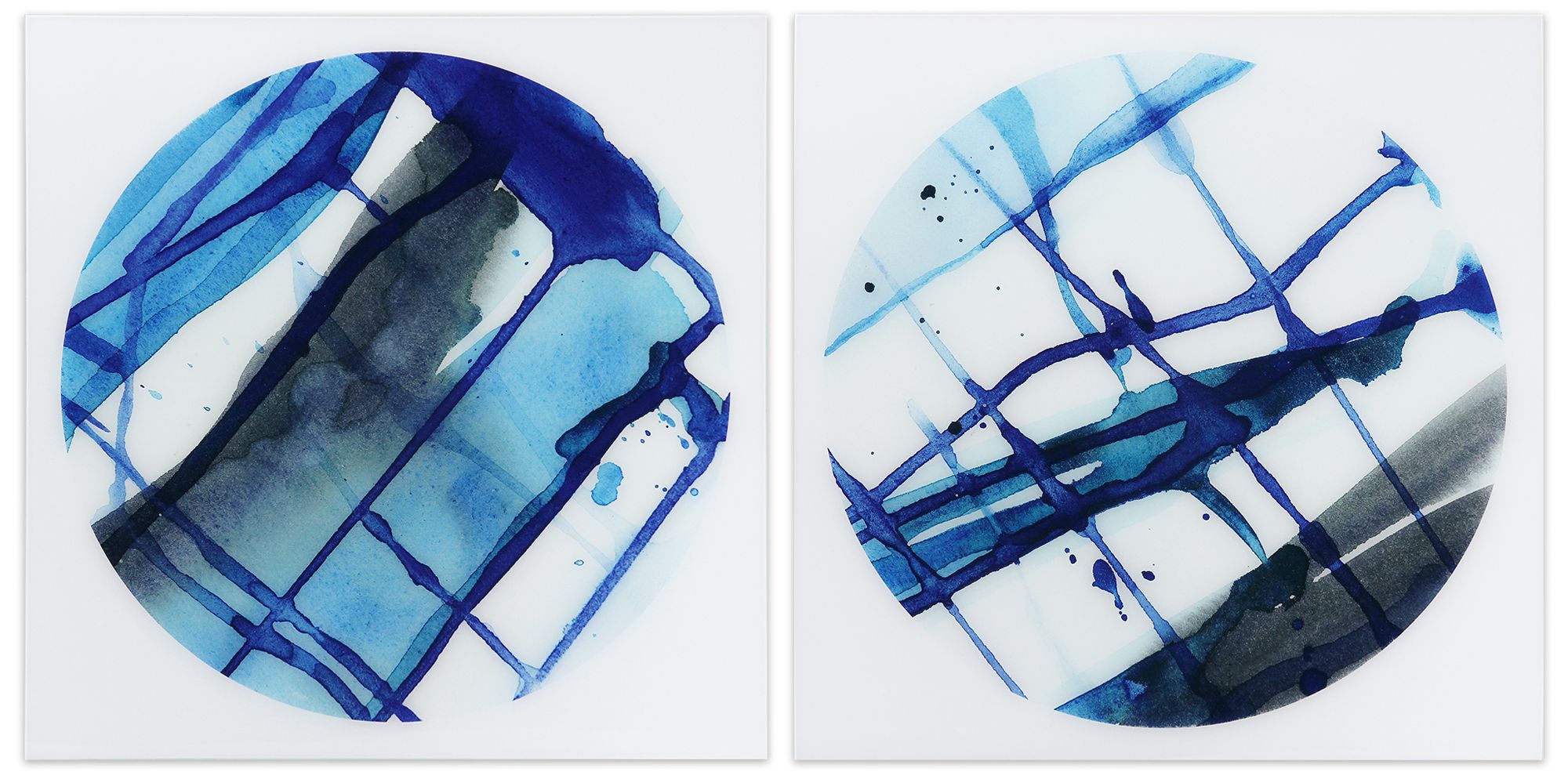 Blue Stripes 1 & 2 Frameless Free Floating Tempered Glass Wall Art