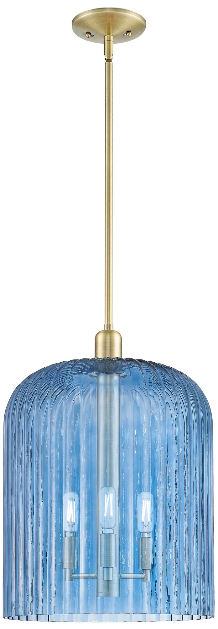 Bridal Veil 12"W 3 Light Antique Brass Stem Mini Pendant w/ Blue Shade