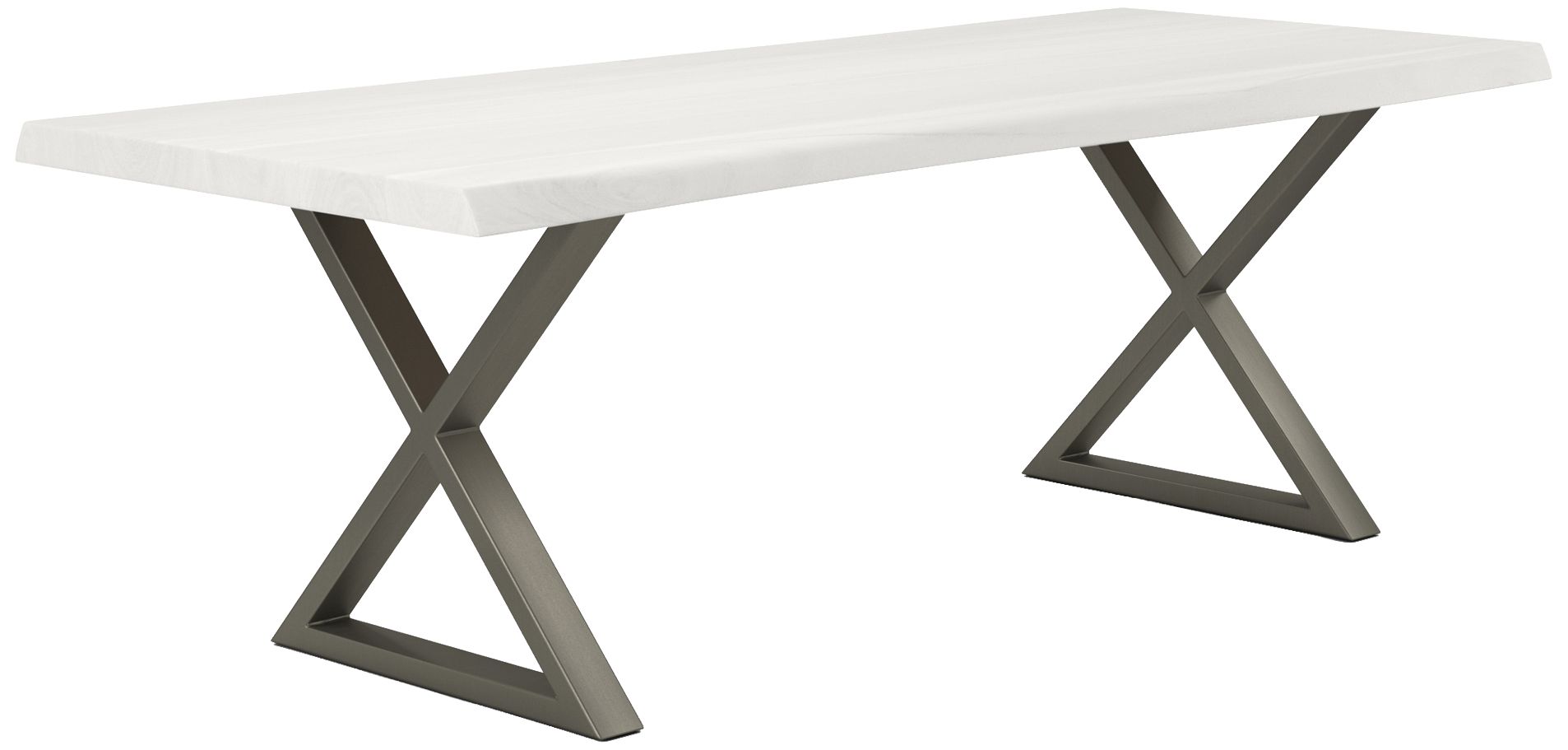 Brooks Dining Table X Base 40" x 92" White Wash Top Pewter Base
