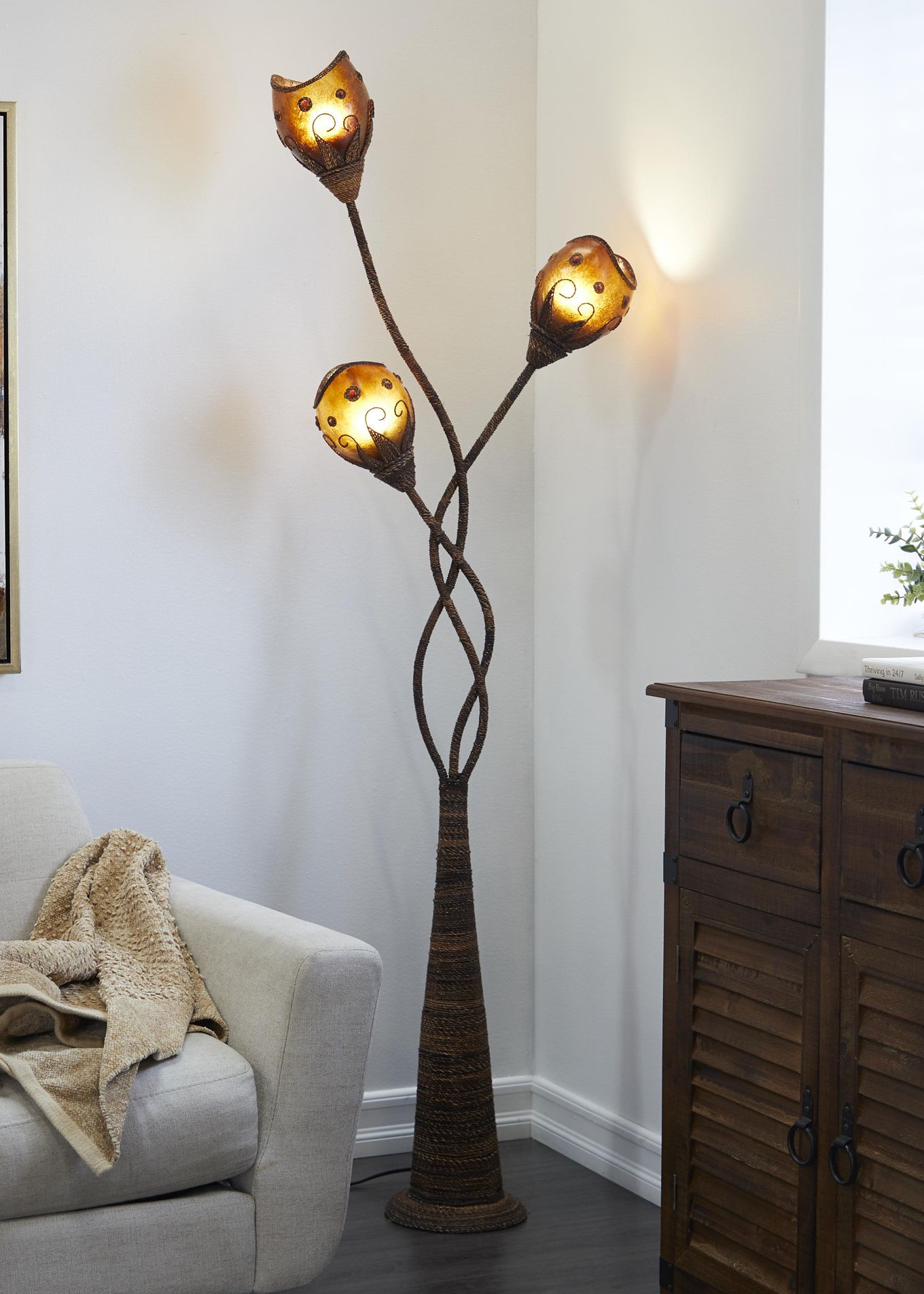 Brown Dried Plant Modern Floor Lamp, 21" x 9" x 72"
