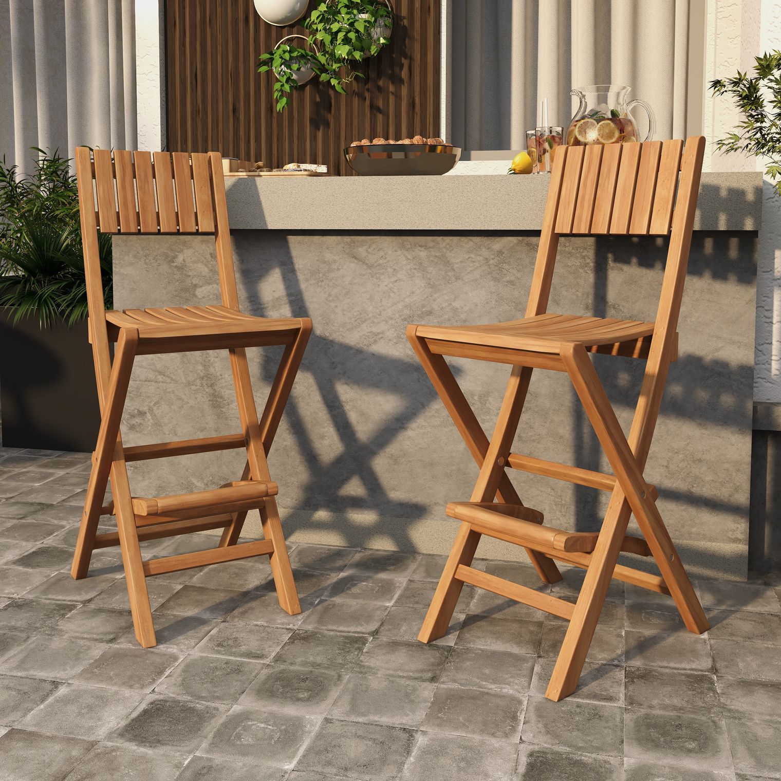 Brown Teak Wood Traditional Bar Stool, S/2 18"W, 45"H