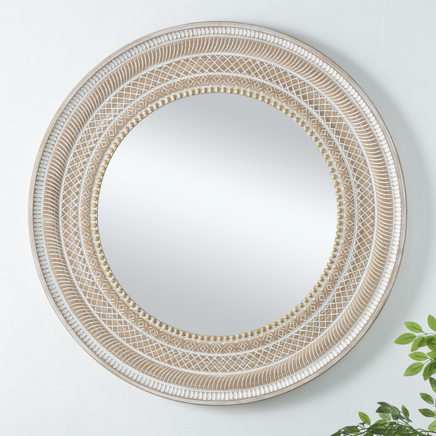 Brown Wood Bohemian Wall Mirror, 48" x 2" x 48"