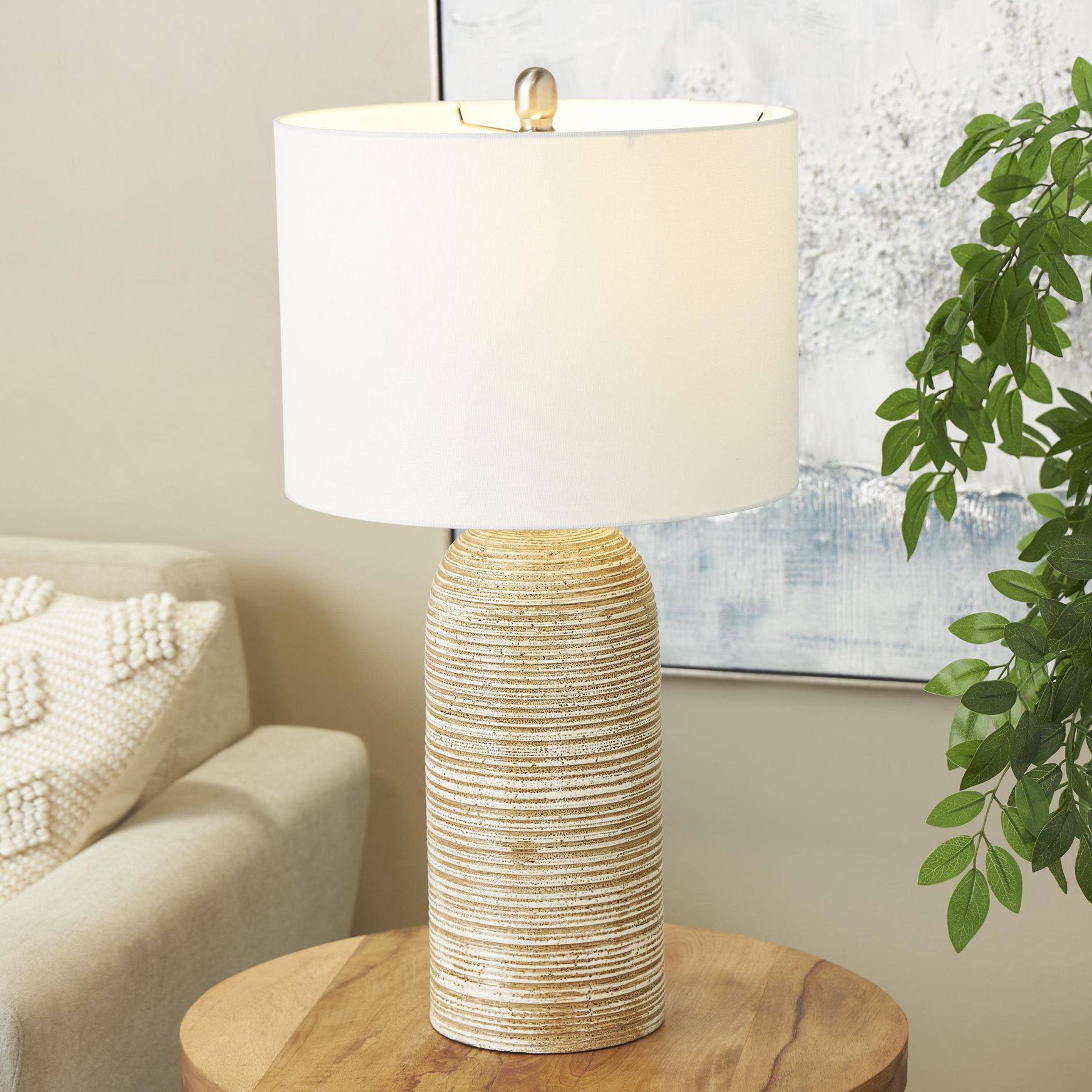 Brown Wood Farmhouse Table Lamp, 14" x 14" x 27"