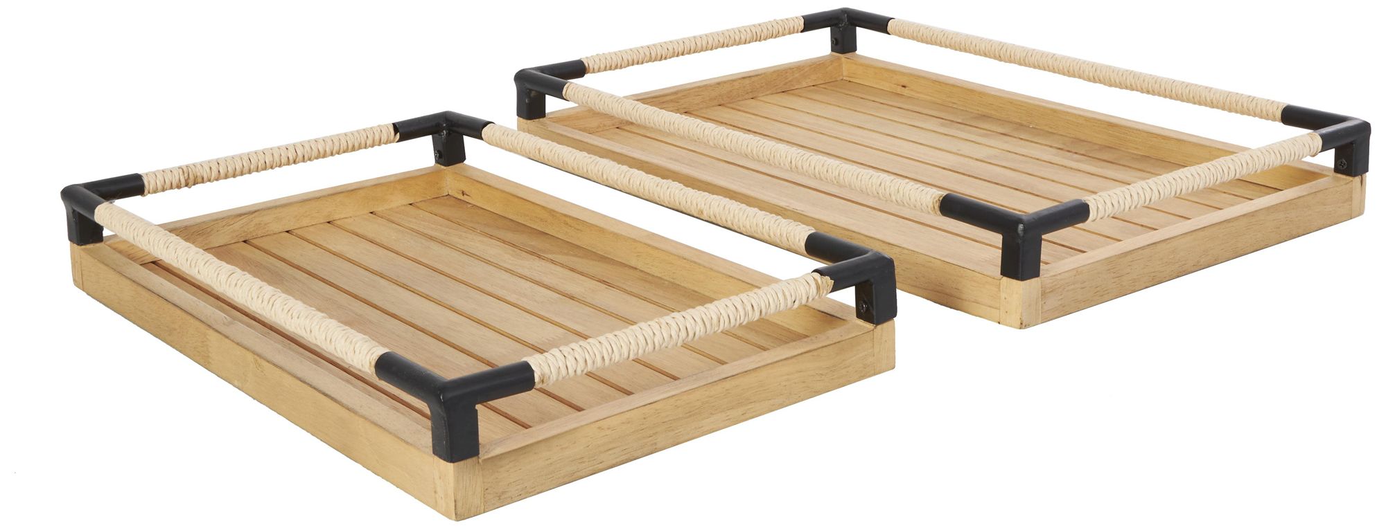 Brown Wood Modern Farmhouse Tray, S/3 19", 16"W