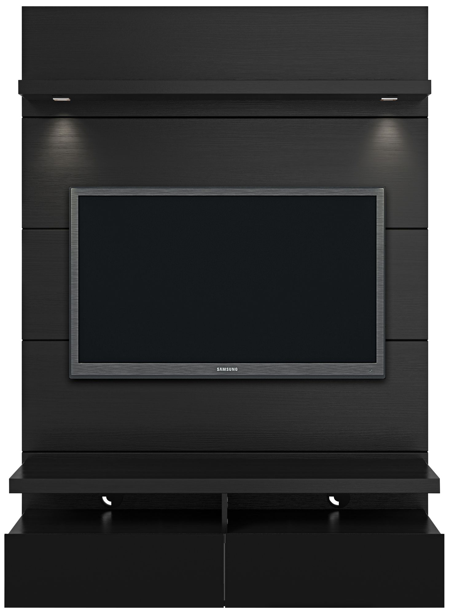 - Ample storage space with media holes for wire management and 1 media hole for TV wire.