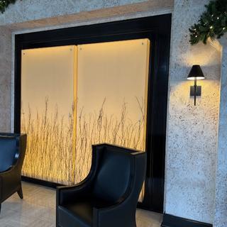 - Square backplate is 5" wide x 3/4" deep. Distance from mounting to the top of the fixture is 11".