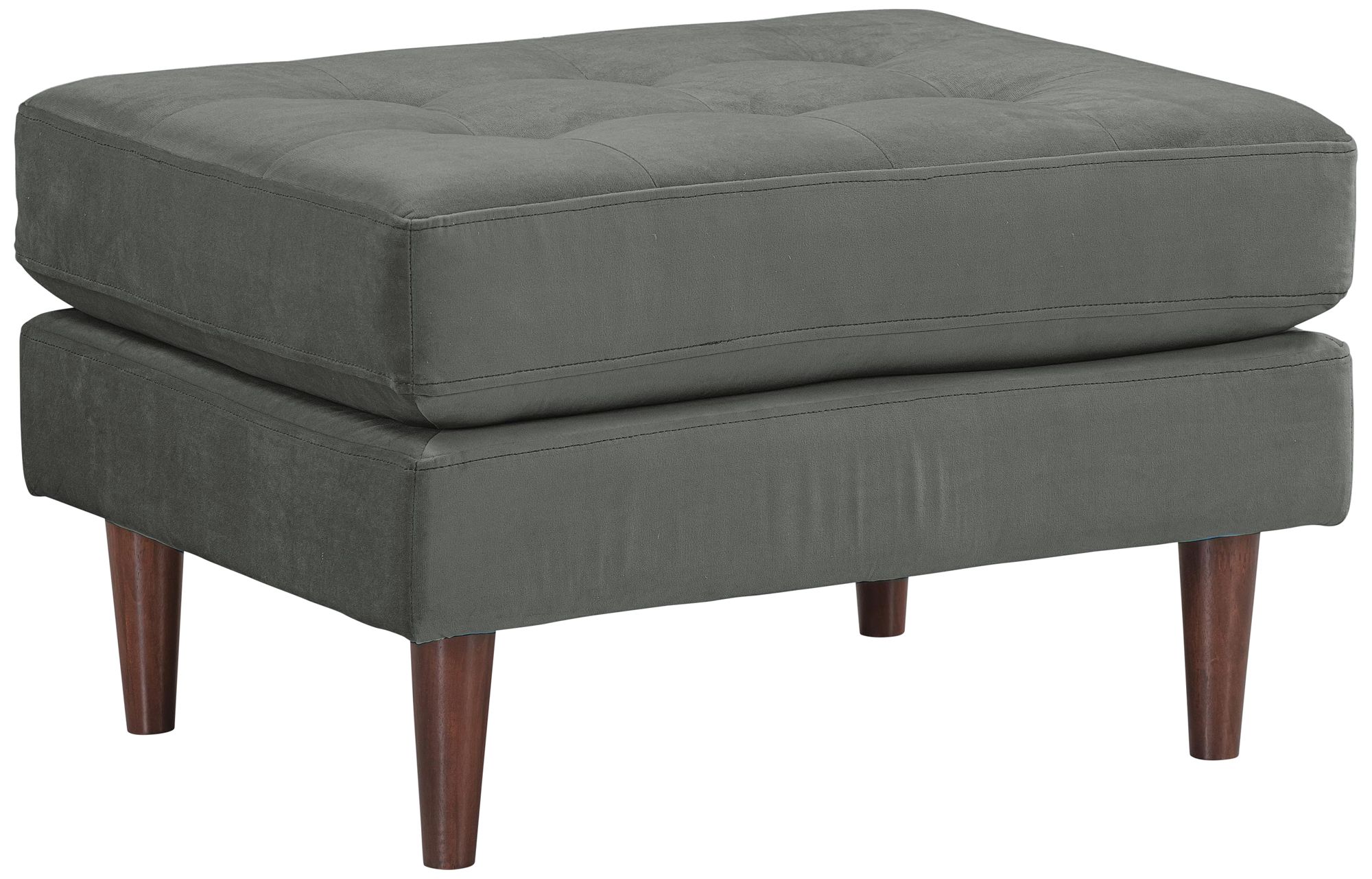 Put your feet up in glamourous style on this Mid-Century Modern ottoman from the Cave collection by TOV. Dressed in hand-tufted ash gray velvet, the rectangular ottoman looks at home in a big city penthouse or suburban dwellings. It features luxurious construction touches like high-gauge sinuous springs and high-resilience foam with fiber wrap filling. The timeless ottoman rises above ordinary foot stools on brown finish acacia and rubberwood legs and frame.