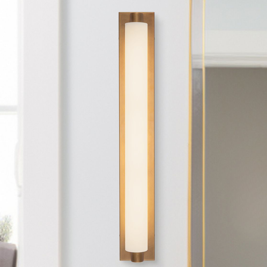 Charleston 31-in Vintage Brass dimmable LED Bathroom Vanity Light