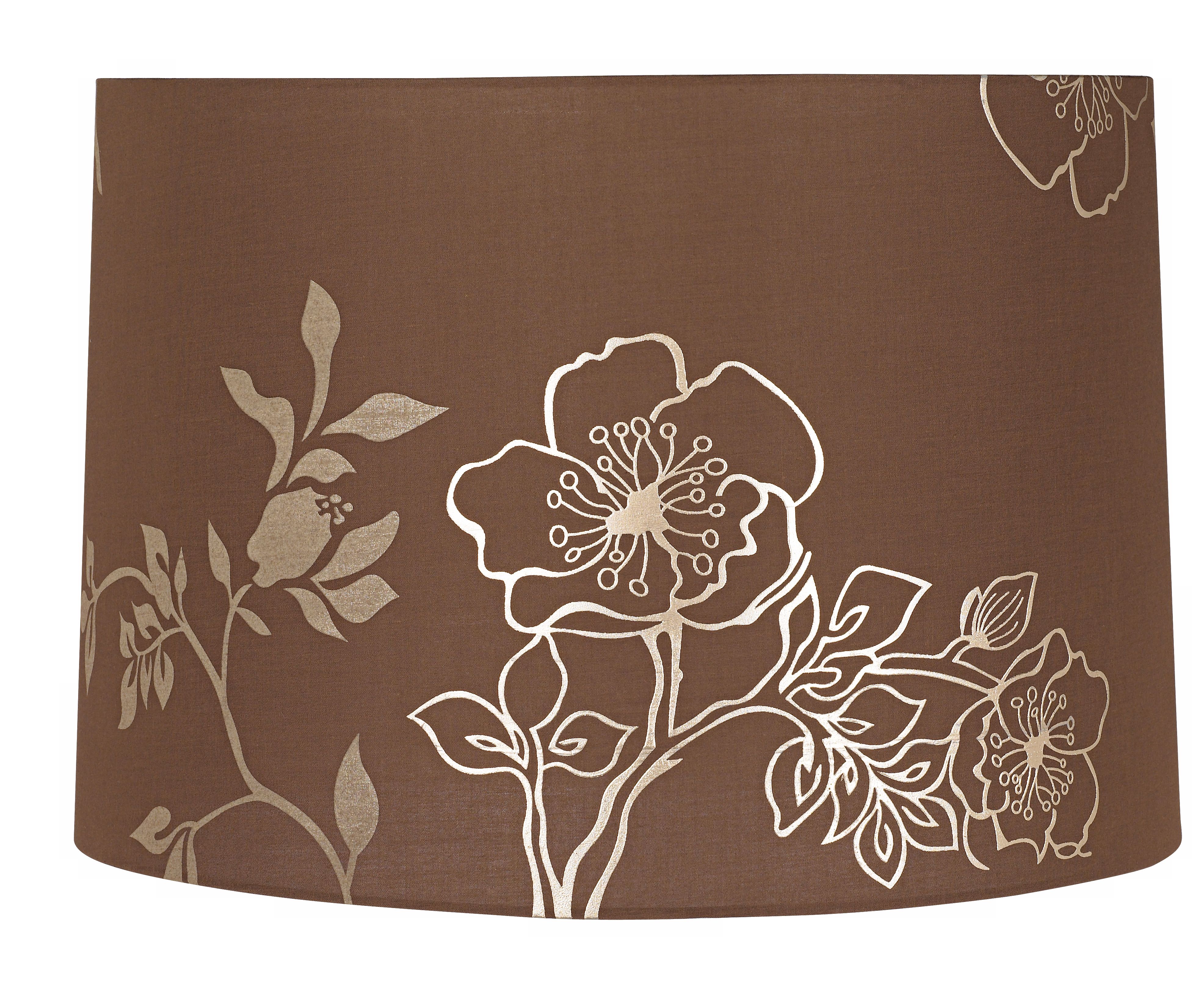 A light and lovely look with a pretty floral pattern. This hardback drum shade features chocolate cotton fabric with metallic gold and grey flower print. Unlined shade offers a translucent look. A great way to refresh existing lamps and fixtures.