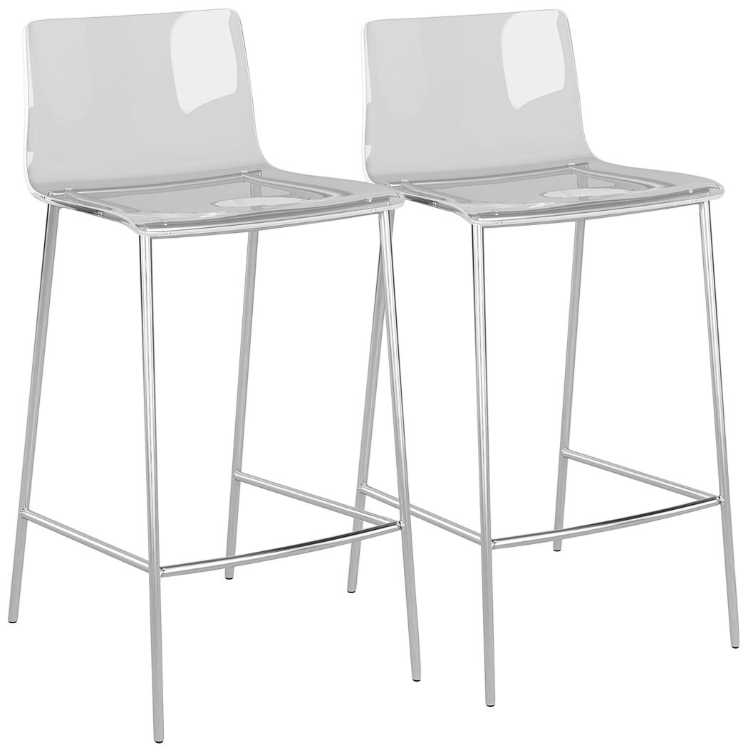 Cilla 26" High Clear Acrylic Brushed Nickel Counter Stools Set of 2