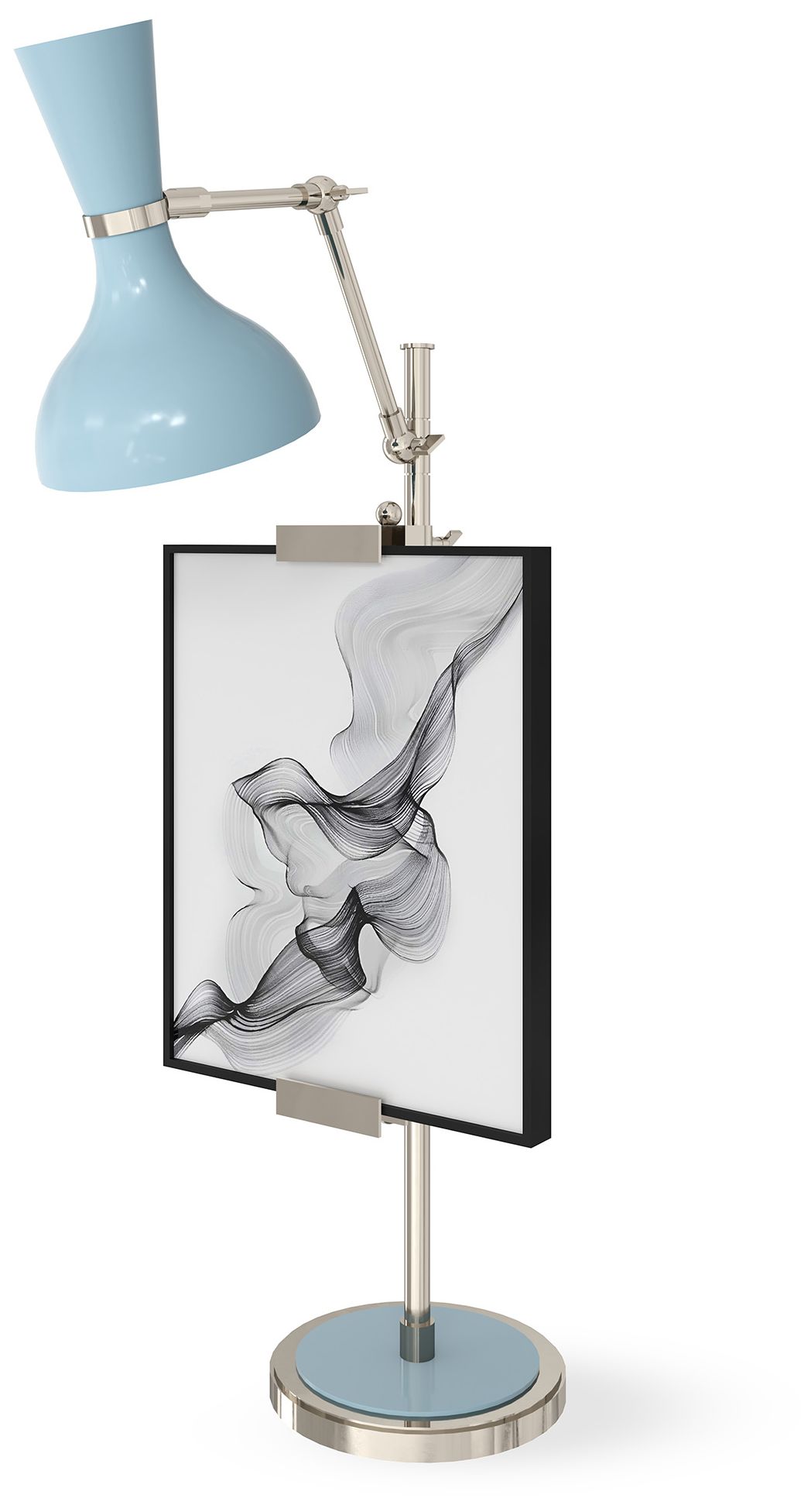 1_Clare 30.38"H Polished Nickel Finish Easel Table Lamp w/ Baby Blue Shade