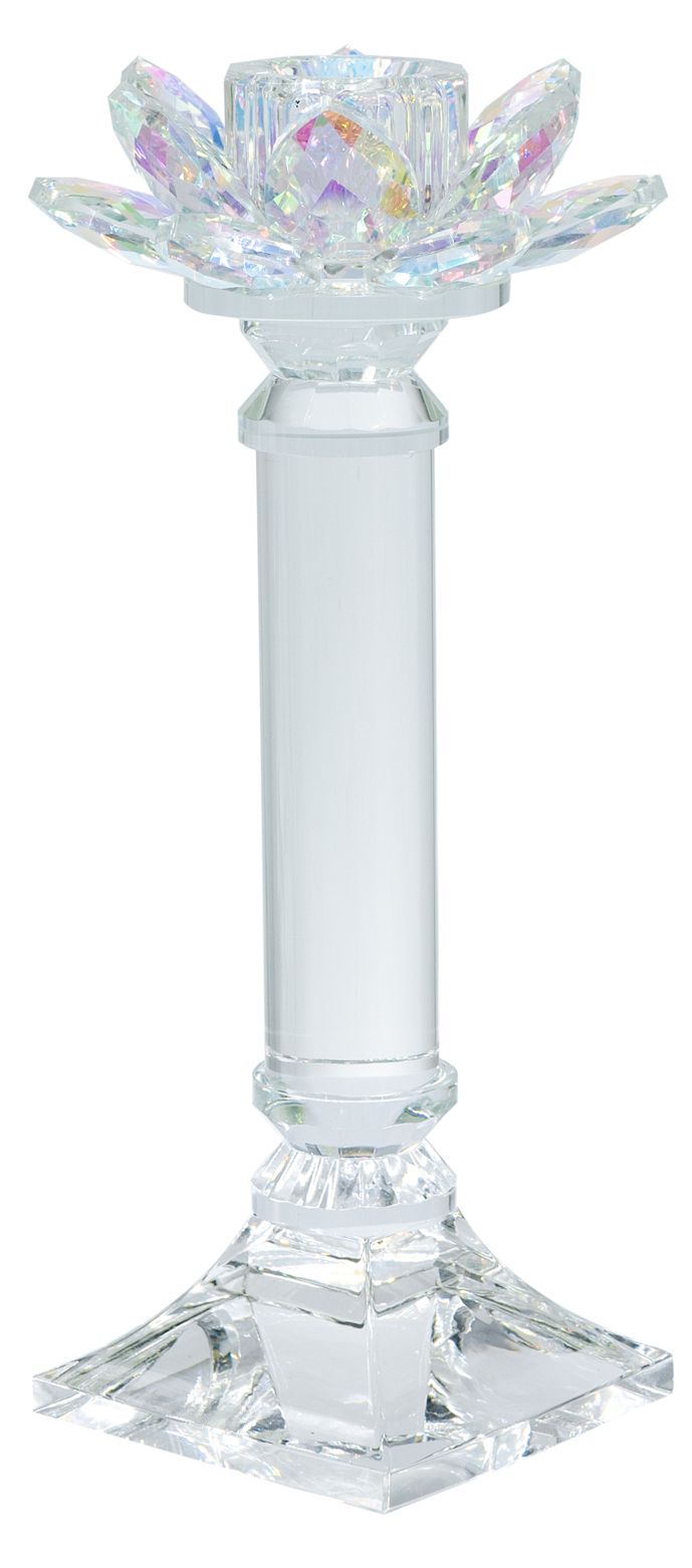 Clear Glass Lotus Flower 9" Taper Candle Holder Iridescent Finish