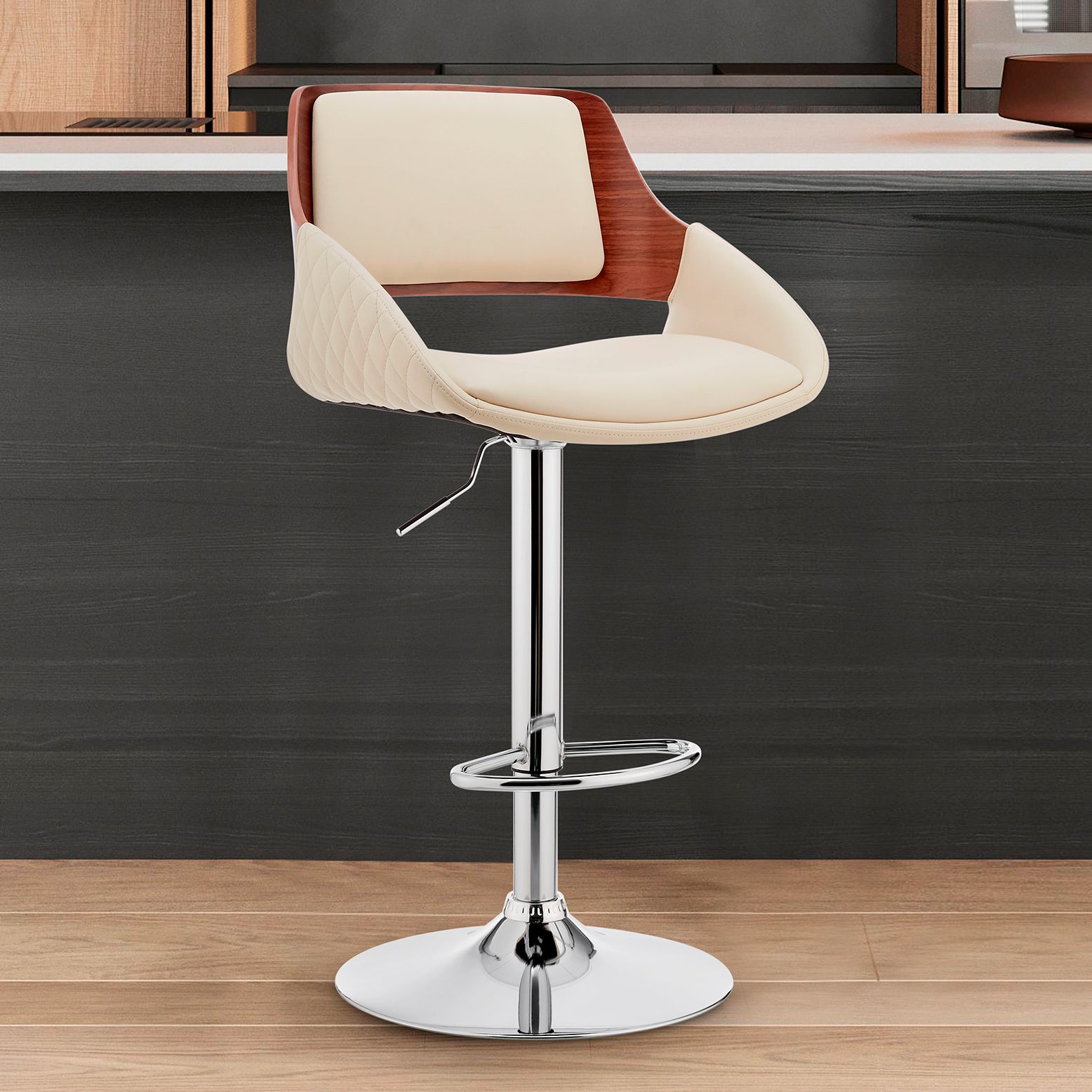 Colby Adjustable Barstool in Chrome Finish with Cream Faux Leather
