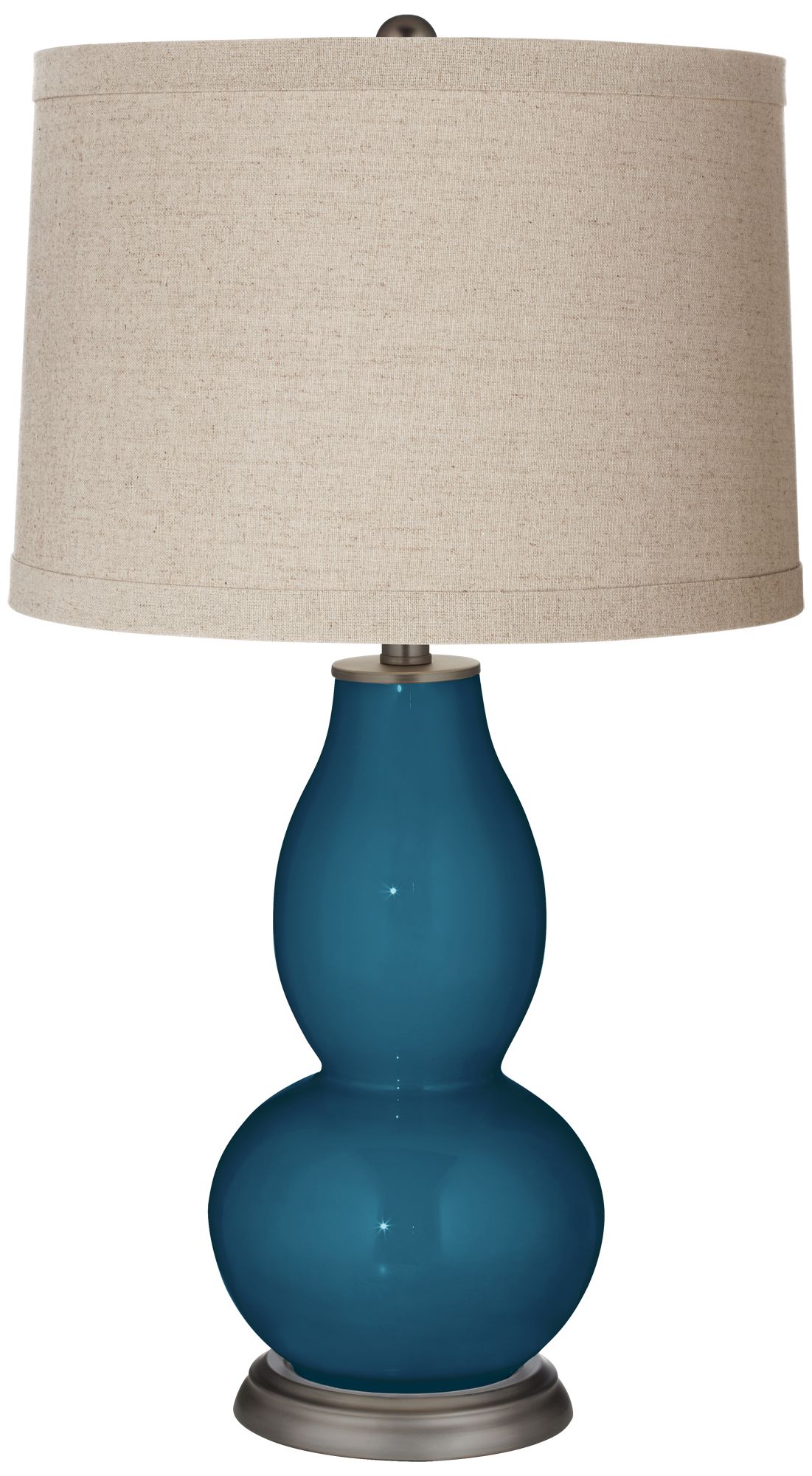 Color Plus Double Gourd 28 3/4" Linen Shade Oceanside Blue Table Lamp