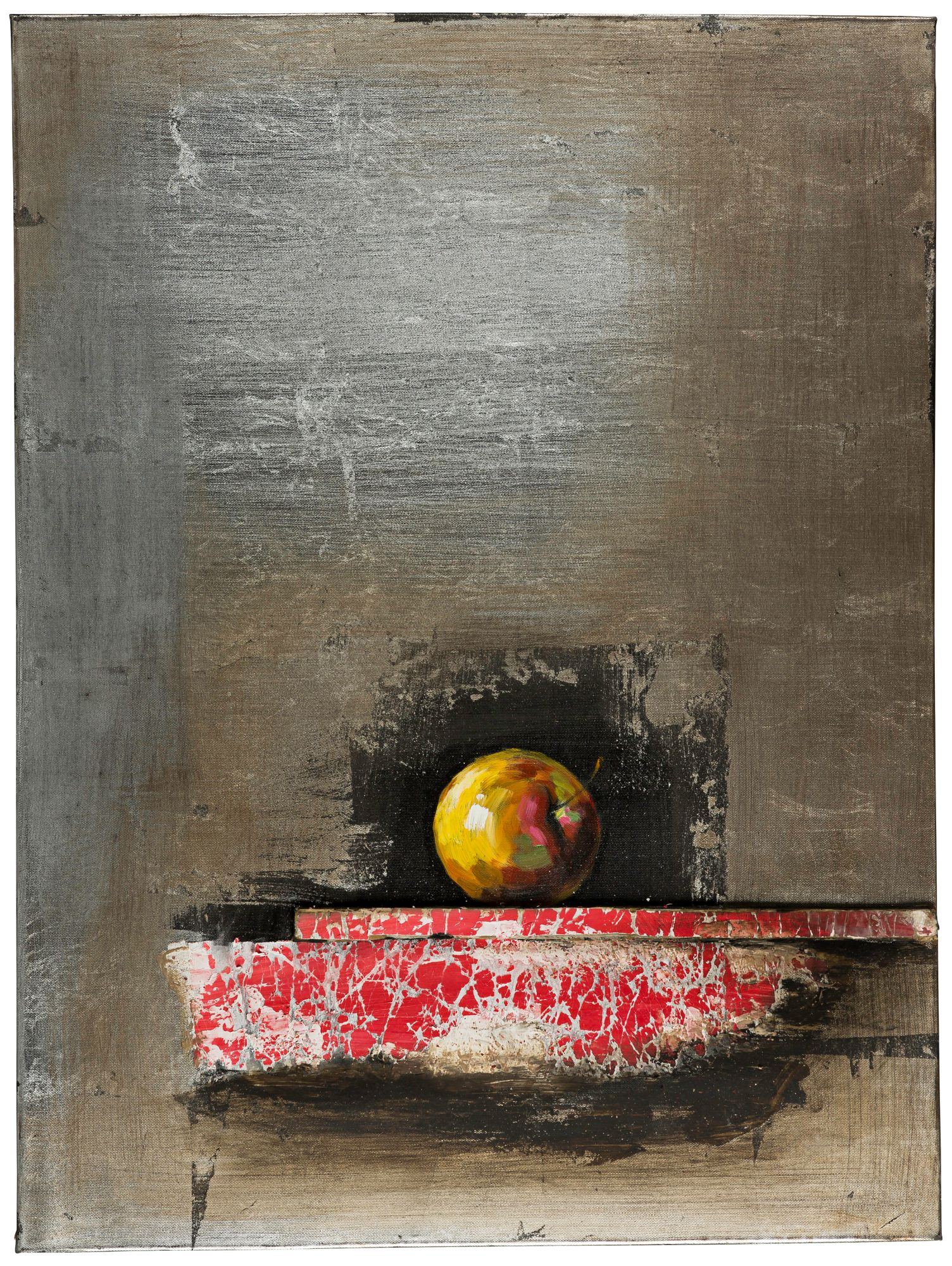 Make a chic statement with this canvas wall art style. The hand-painted design features a distressed red brick shelf as the base for a round yellow green apple. By Cooper Classics.