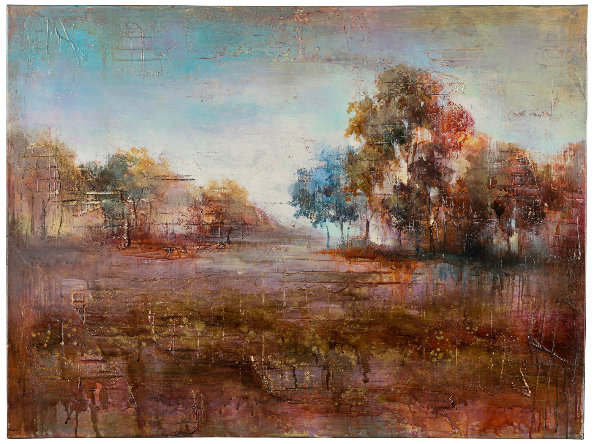 Soft and delicate brushstrokes create a relaxing and hazy image in this wall art style. The warm brown colors are paired with soft hues of gray and blue for a beautiful effect. From Cooper Classics.