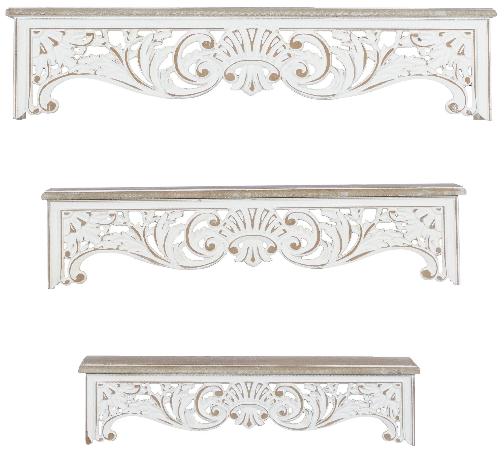 Cream Wooden Vintage Wall Shelf, S/3 19", 24", 28"W