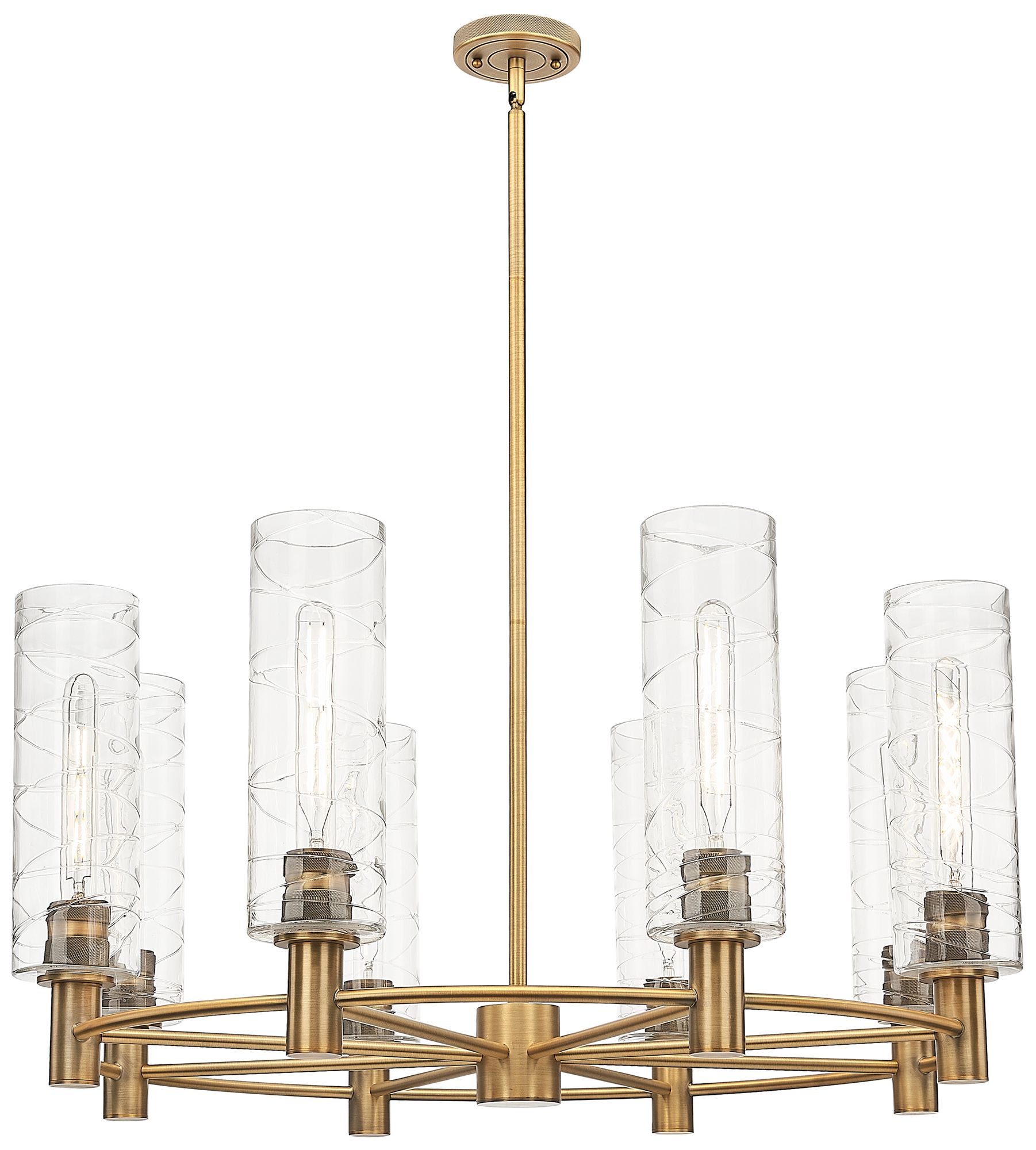 Crown Point 32"W 8 Light Brushed Brass Stem Chandelier With 12" Shade
