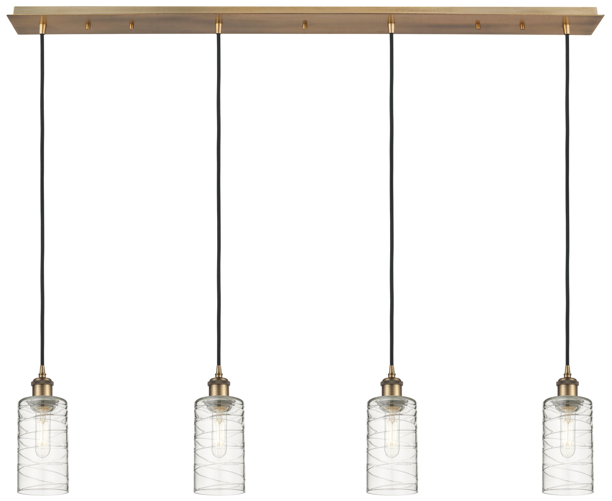 Crown Point 4 Light 49" Cord Hung Linear Pendant Brass w/ Deco Swirl Shade