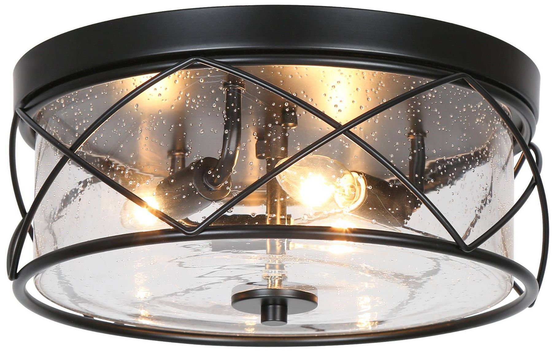Crslin 13" Wide Drum Seeded Glass 3-Light Ceiling Light