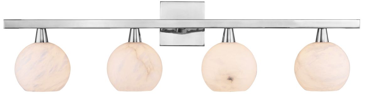 The Bombelles Nickel Bath Bar was designed to spread abundant light over a bathroom counter; the shiny silver fixturejoining others in the Bath Collection. The globes will be luminous when they are lit, as they are made of natural alabaster, and the polished nickel finish on the metal continues the coolness of the design. Alabster is a natural material, so there will be slight variations in each of the fixtures.
