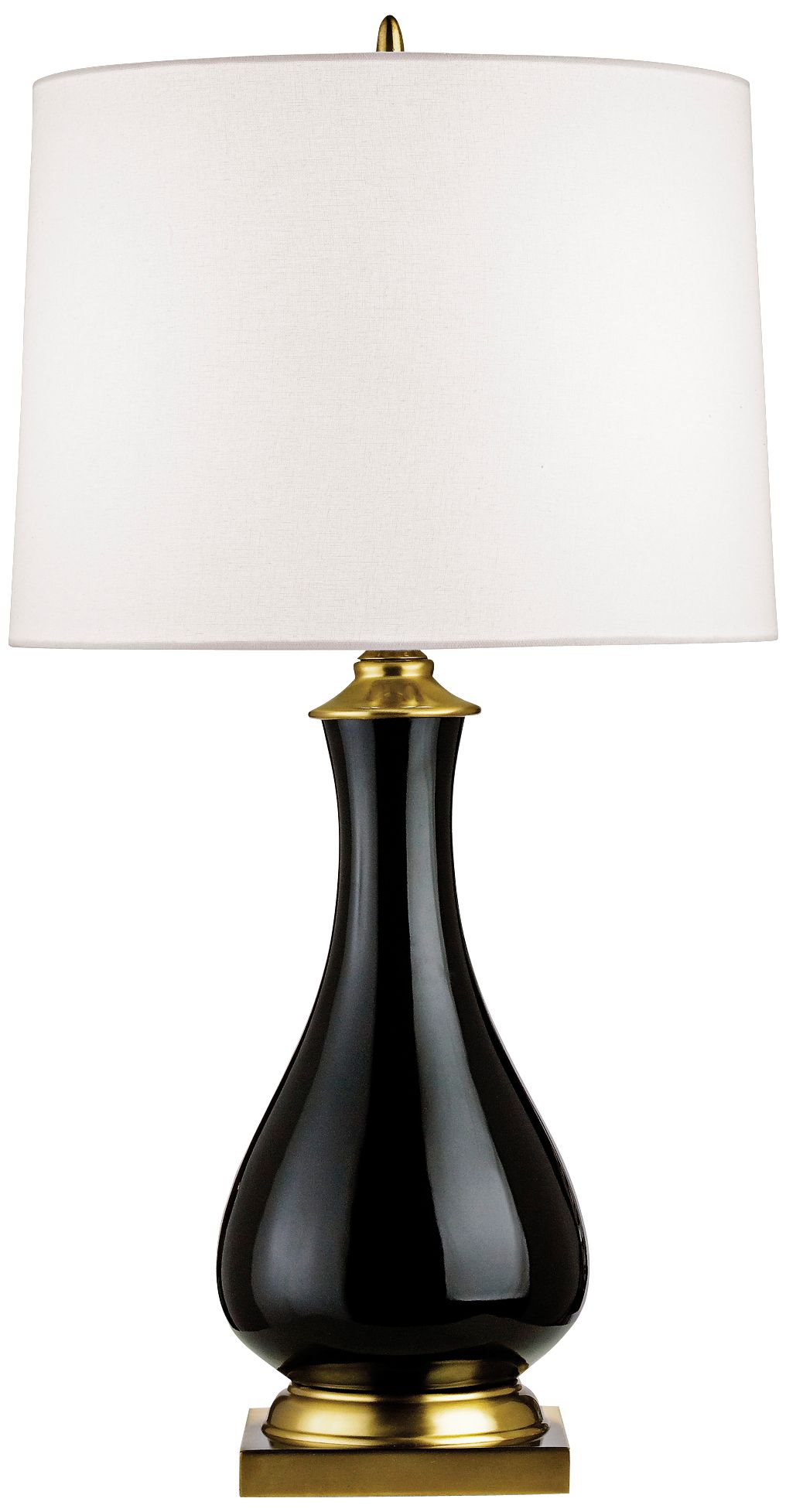 Elegant, transitional style is updated with a brilliant black glaze finish in this softly sculpted table lamp. An off-white linen drum shade only enhances the beauty of this chic style. Grace your home with this simply stunning Lynton table lamp from Currey and Company.
