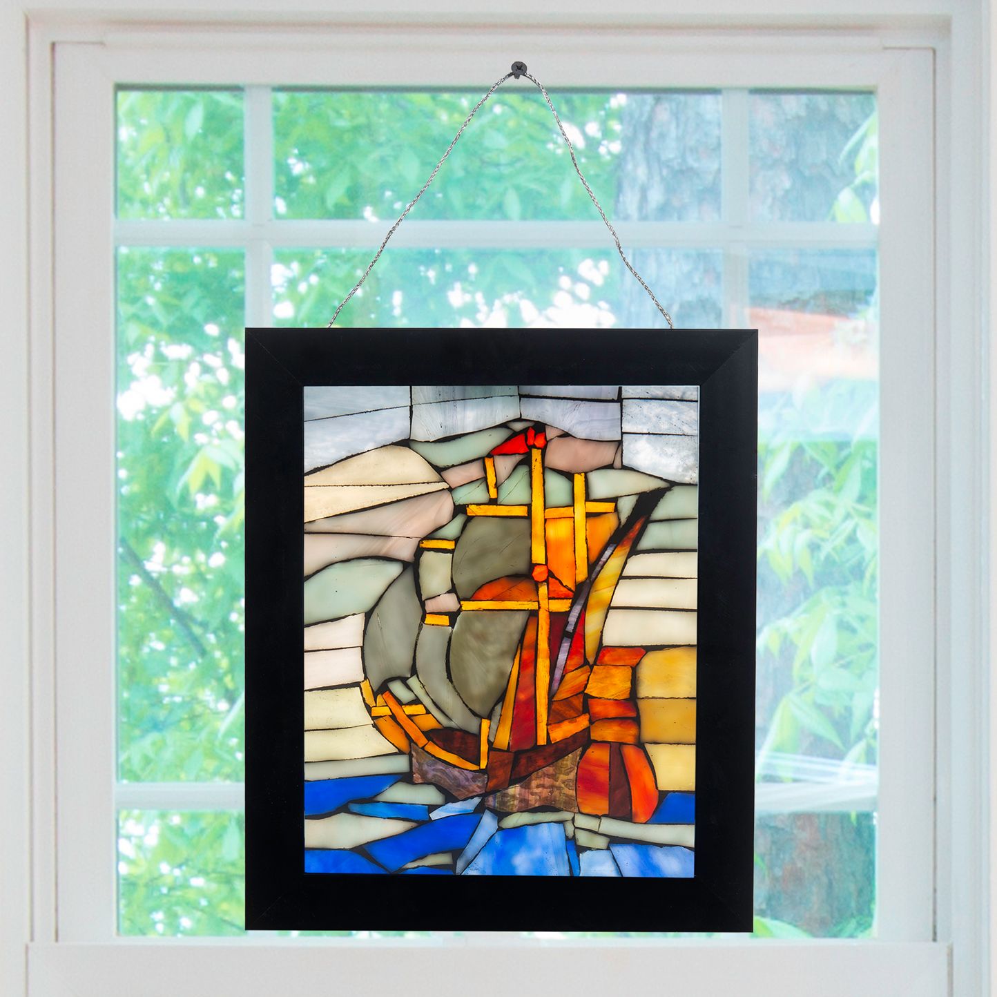 4_Dale Tiffany 10" Tall Flagship Mosaic Art Glass Wall Decor / Suncatcher more views