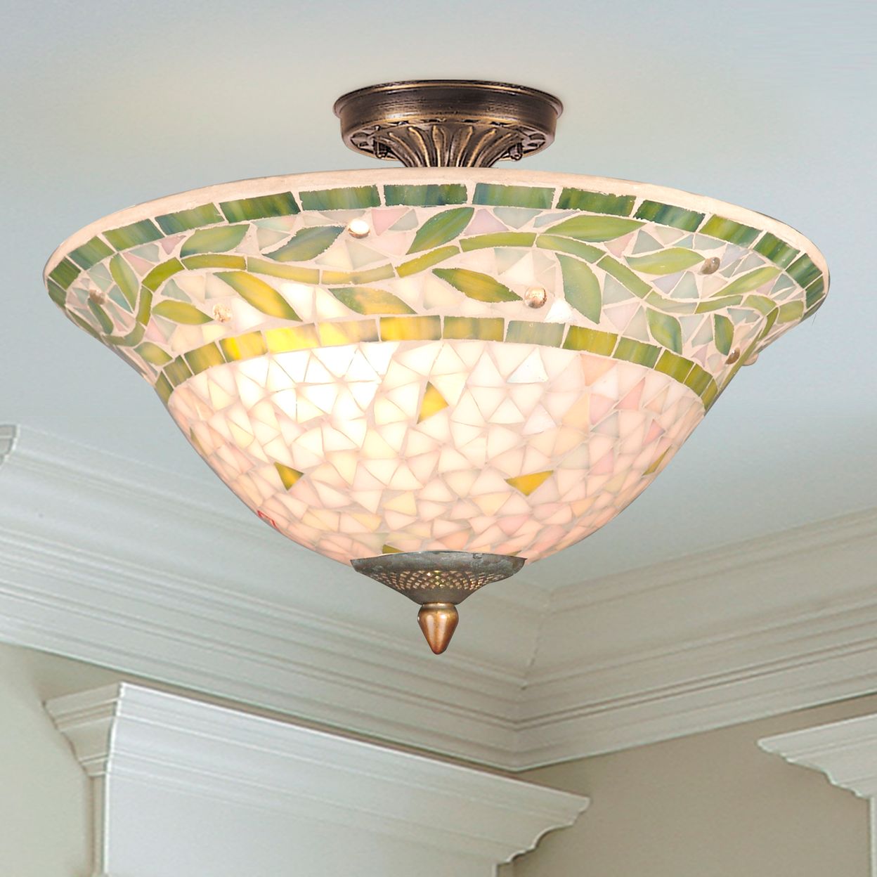 2_Dale Tiffany 13.25" Wide Cadena Mosaic Art Glass Flush Mount
