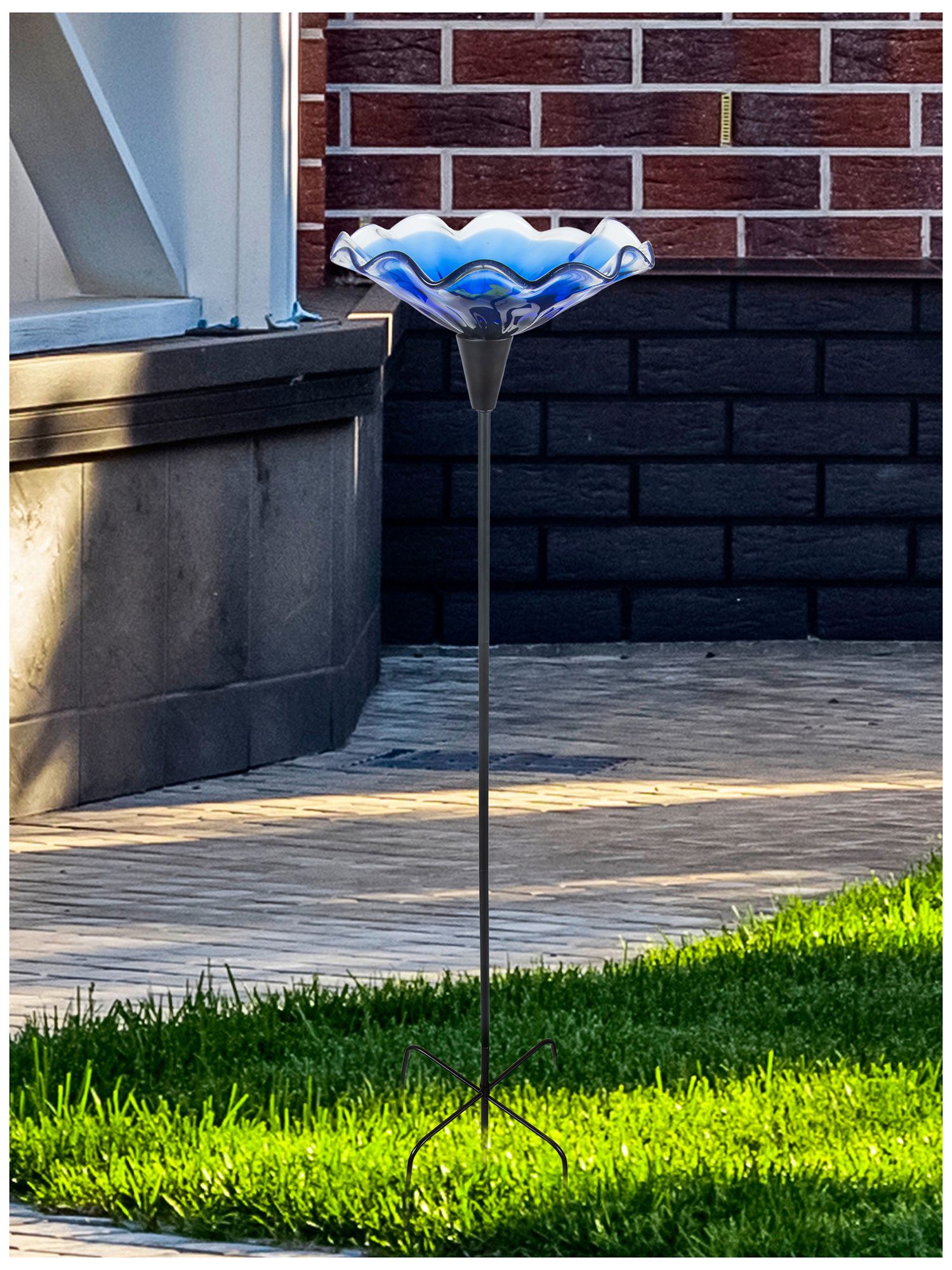 Dale Tiffany 52" Tall Fiore Bloom Blue Hand Blown Glass Bird Bath / Feeder