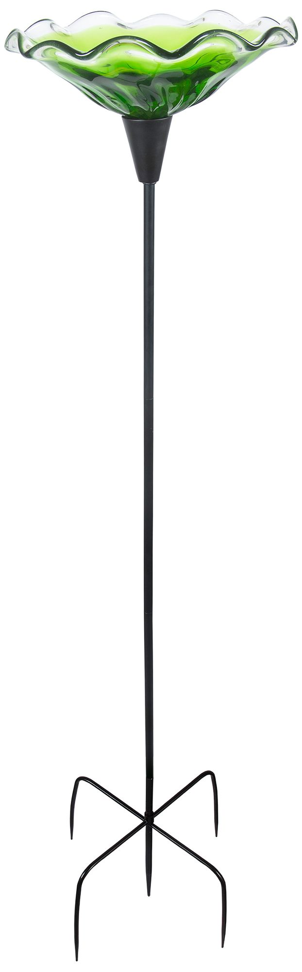 Dale Tiffany 52" Tall Fiore Bloom Green Hand Blown Glass Bird Bath / Feeder