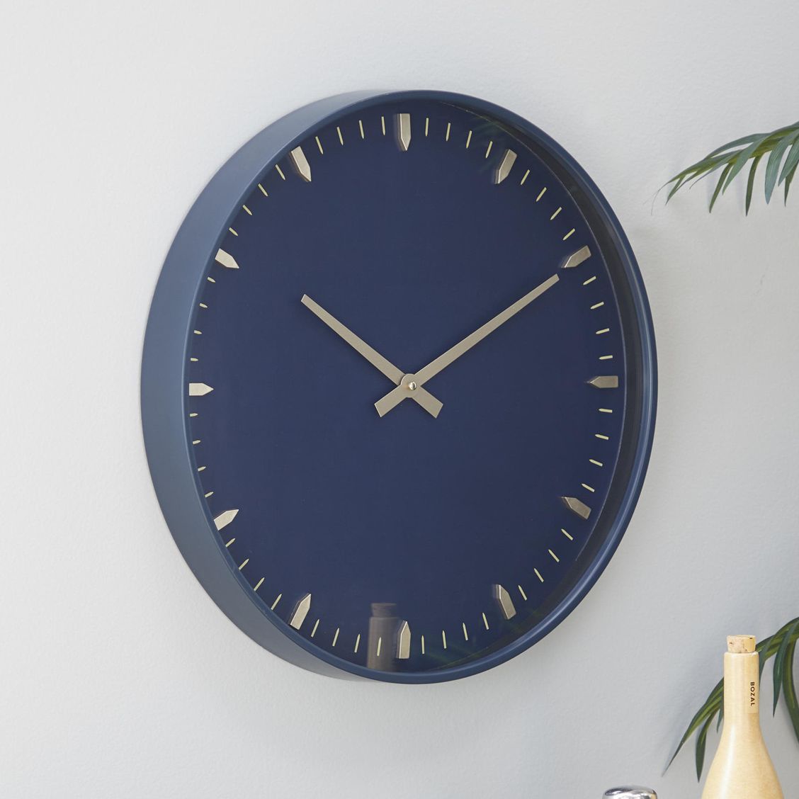 - Dark Blue Glass Contemporary Wall Clock, is produced by Deco USA, LLC.