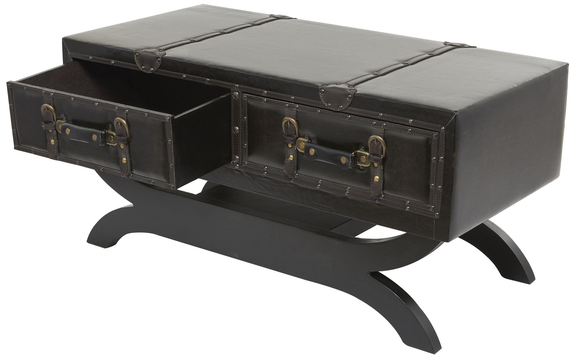 Dark Brown Faux Leather Traditional Coffee Table, 40" x 19" x 21"