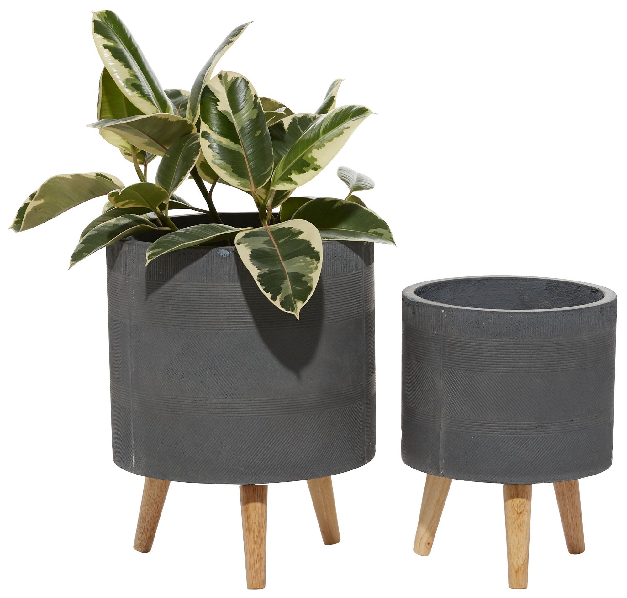 Dark Gray Magnesium Oxide Contemporary Planter, S/2 16", 13"H