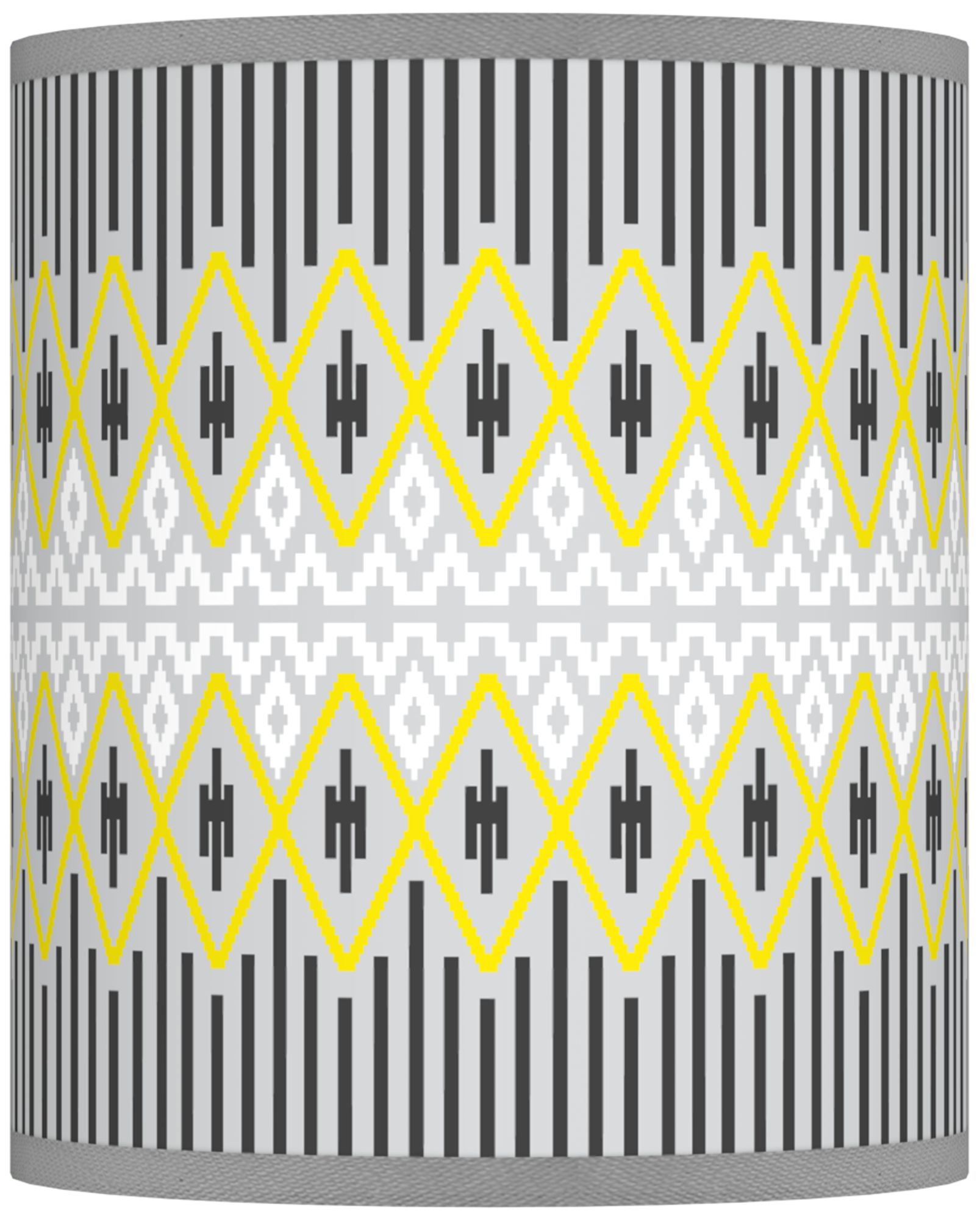 Add a fresh design feature to your home with this custom made-to-order lamp shade. Its design features a beautiful Desert Geometric pattern that is completed with a state-of-the-art giclee print technique that allows for the faithful reproduction of color and detail. The correct size harp and finial is included free with this shade. Shade printing process U.S. Patent # 7,347,593.