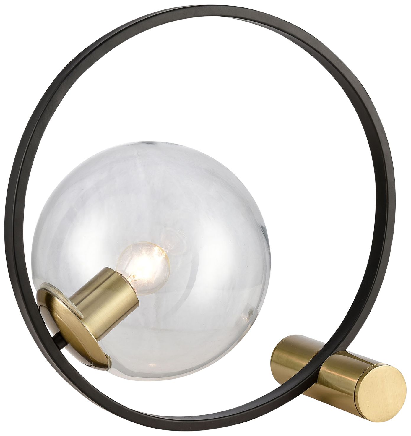 Add a dash of the unexpected to any room of the home. Featuring energy-efficient LED, this metal and glass table lamp is inspired by modern artistry. Its black, open circular frame and gleaming honey brass accents make this piece by Dimond a magnificent addition to any living space.