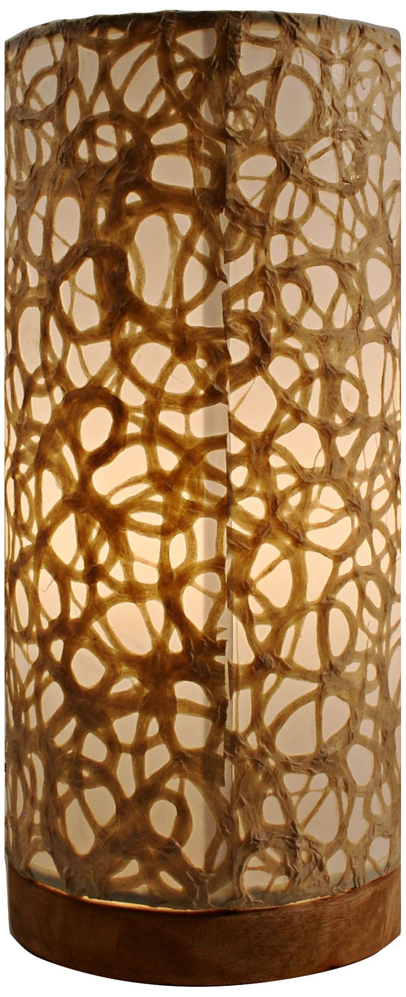 This beautiful hand-made paper cylinder small table lamp features a vibrant swirl, textured design in organic tones. Hand-placed onto a standard cylinder diffuser backing, the shade is formed around a single light that creates a clean, warm glow. A solid driftwood disc base in natural wood finish completes this clean and elegant, organic accent from Eangee.