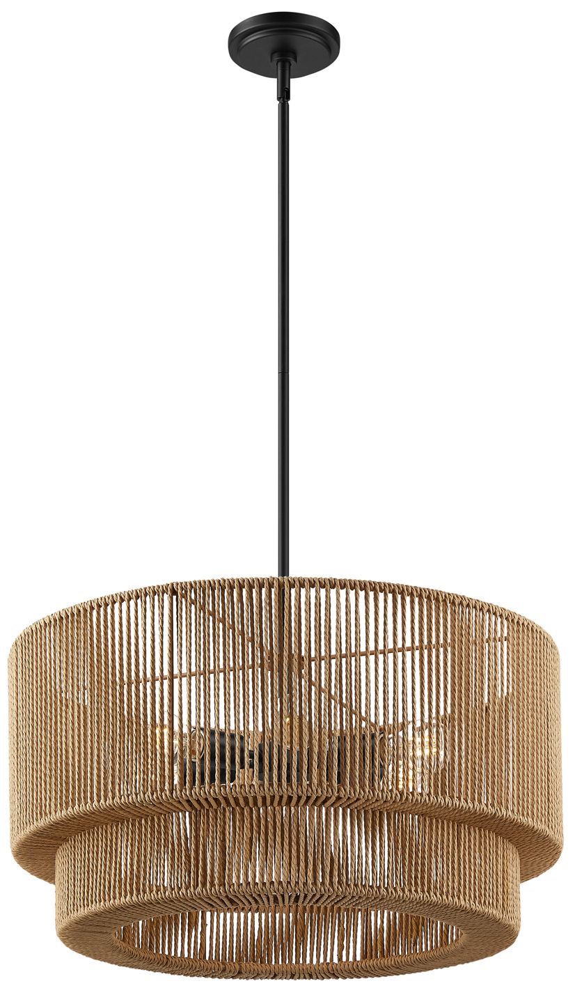 Eco Milos 24" Wide 6-Light Matte Black, Natural Pendant