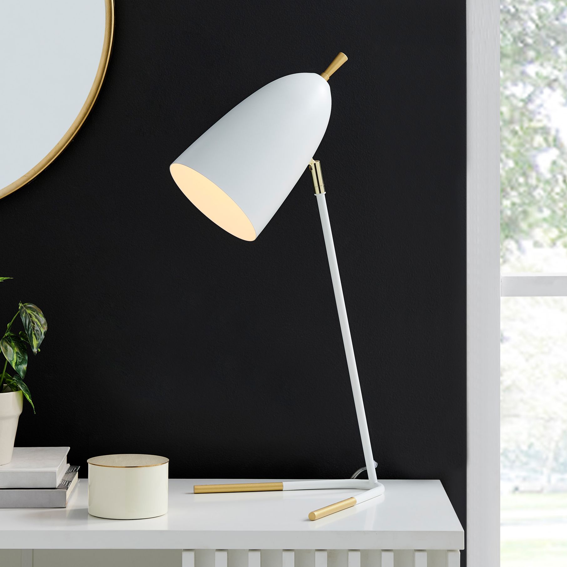 Sophisticated updates to a classic silhouette bring compelling style to this modern metal task table lamp. From Lite Source, it delivers focused illumination perfect for studying, working, or hobbies. The minimalist profile features a crisp white finish with gold accents and a metal shade.