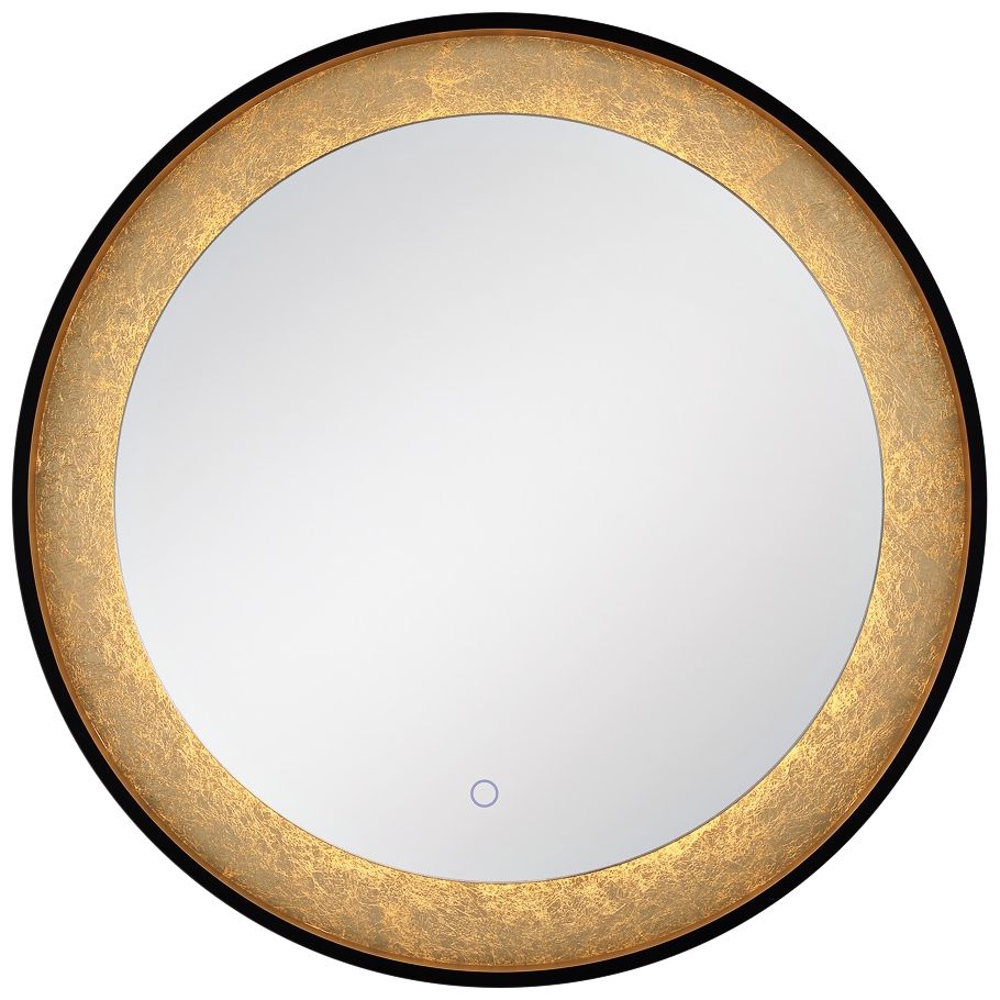 Warm and inviting, a gold leaf accent border adds regal flair to this round wall mirror. Featuring energy-efficient LED lighting, the mirror is from Eurofase's Edge-Lit Mirror collection. The mirror frame features a black finish for excellent contrast. Dress up a vanity or dressing table.