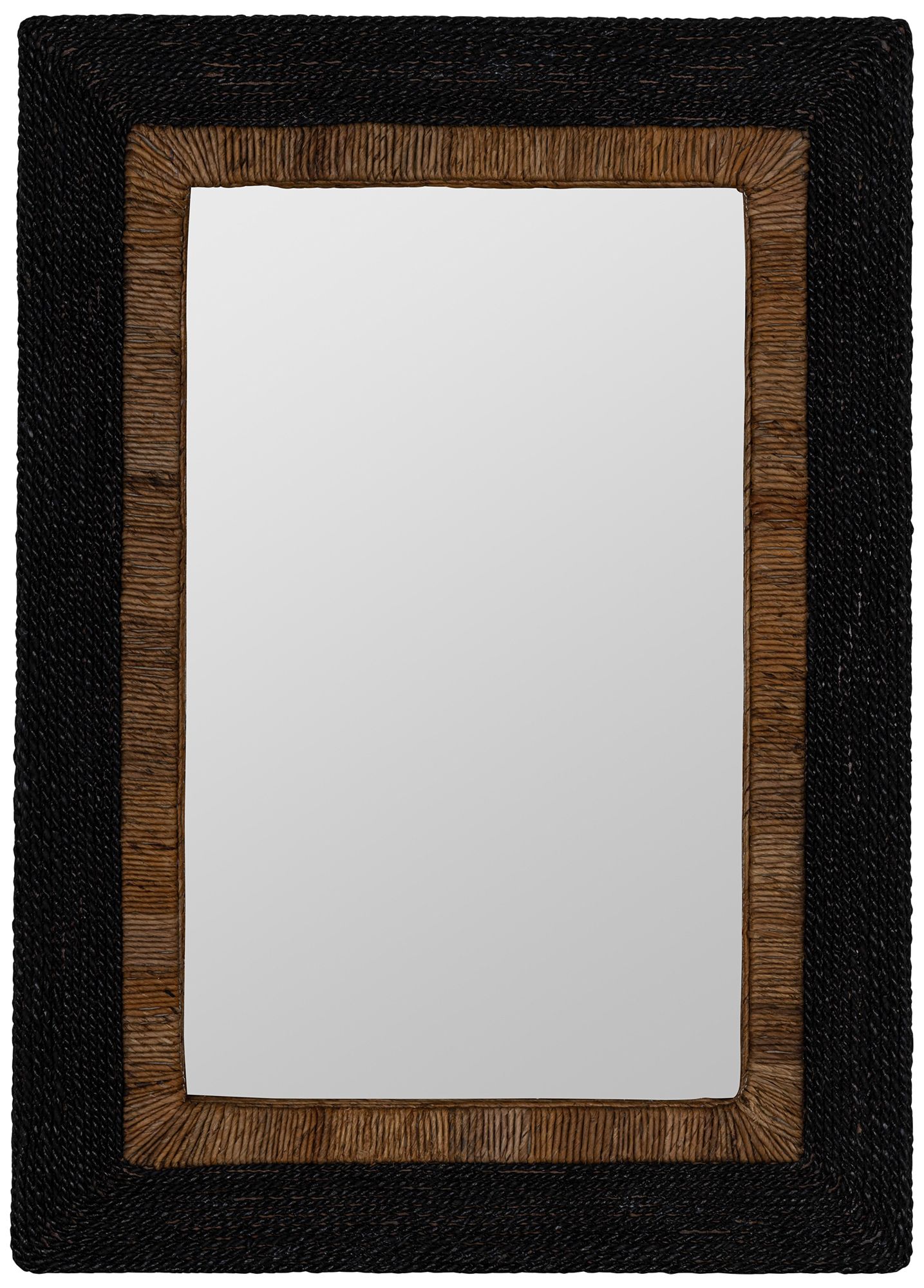 Rustic farmhouse style takes a turn toward exotic to fashion a decadent yet casual mirror perfect for all living spaces. This tasteful rectangular wall mirror delivers the richness of woven detailing and a bold palette. From the Elton collection by Cooper Classics, its rectangular pane of non-beveled glass is surrounded within a dual layer of black and natural finish rattan with a specialty hand-crafted finish.