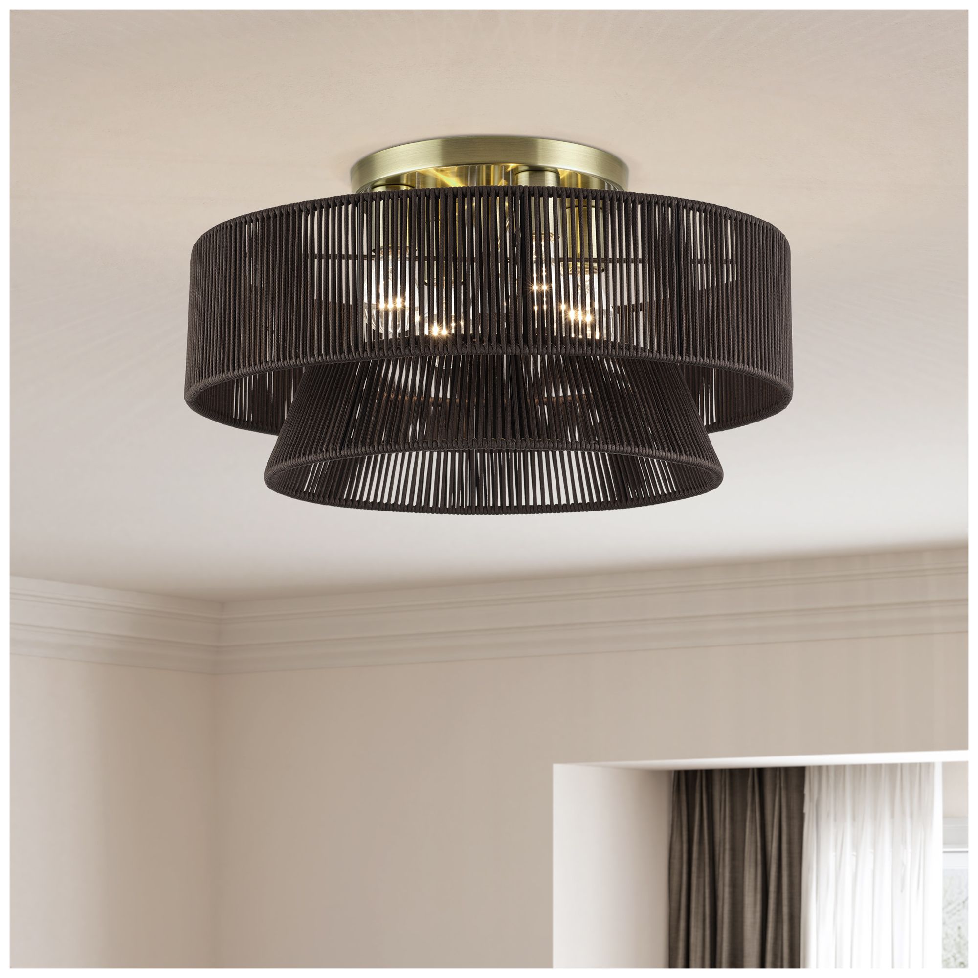 Florell 4 Light Antique Brass Extra Large Semi-Flush