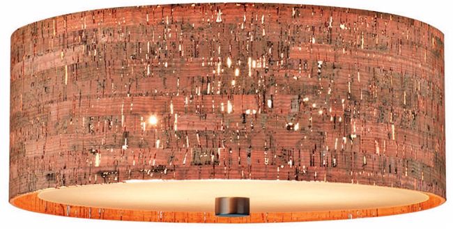 This exceptionally well-styled ceiling fixture adds texture and depth to your decor. This flushmount ceiling light features a beautiful cork over clear acrylic shade. An etched glass diffuser emits warm light. Deep bronze finished accents complete this unique look. By Forecast Lighting.
