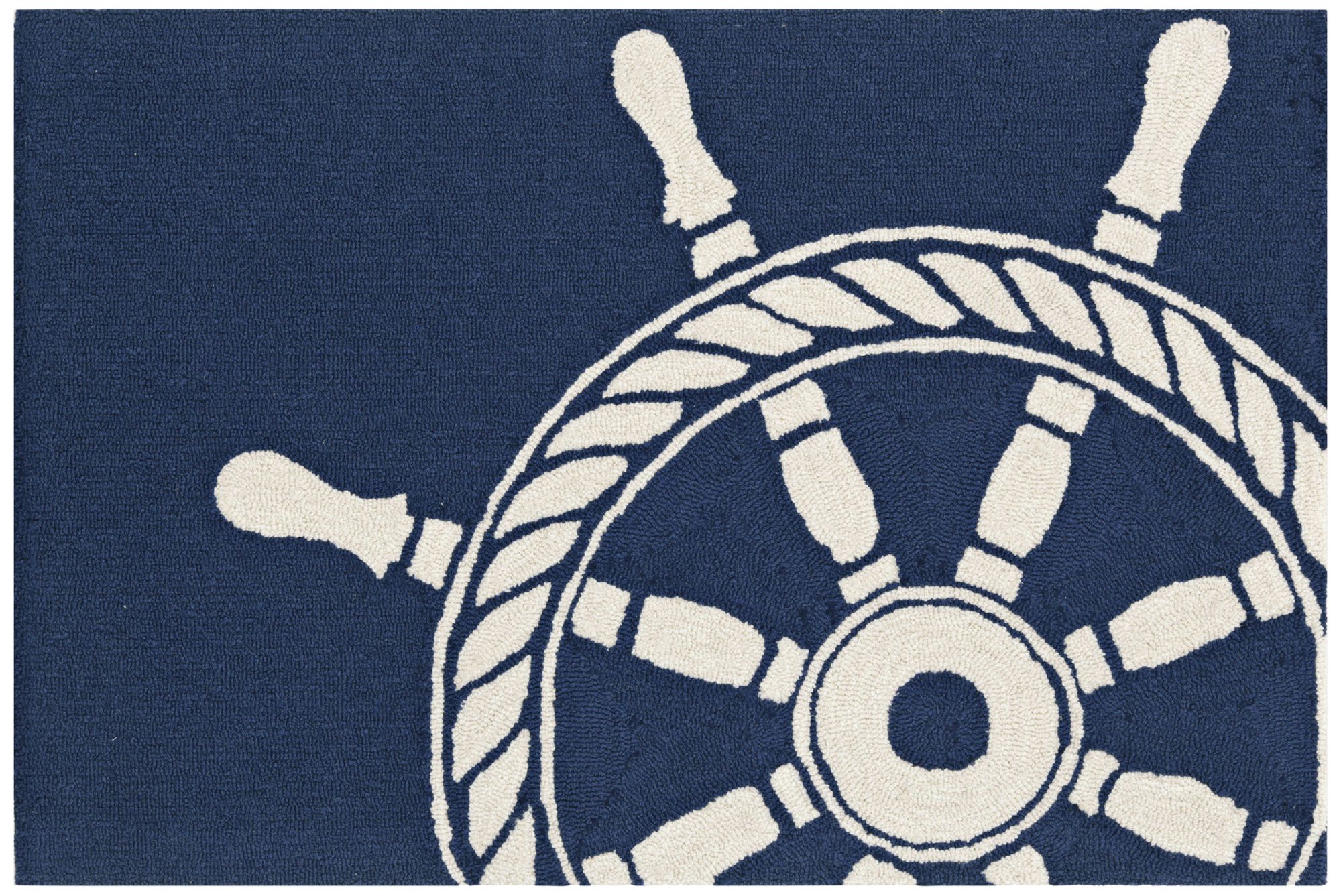 Featuring a detailed ship wheel graphic, this Frontporch rug from Trans-Ocean will help you to bring decorative personality to your home's entrance. The navy color tone beautifully highlights the design to showcase the details in the appearance. With a polyester and acrylic design, this rug is a stylish addition inside or outside your home.