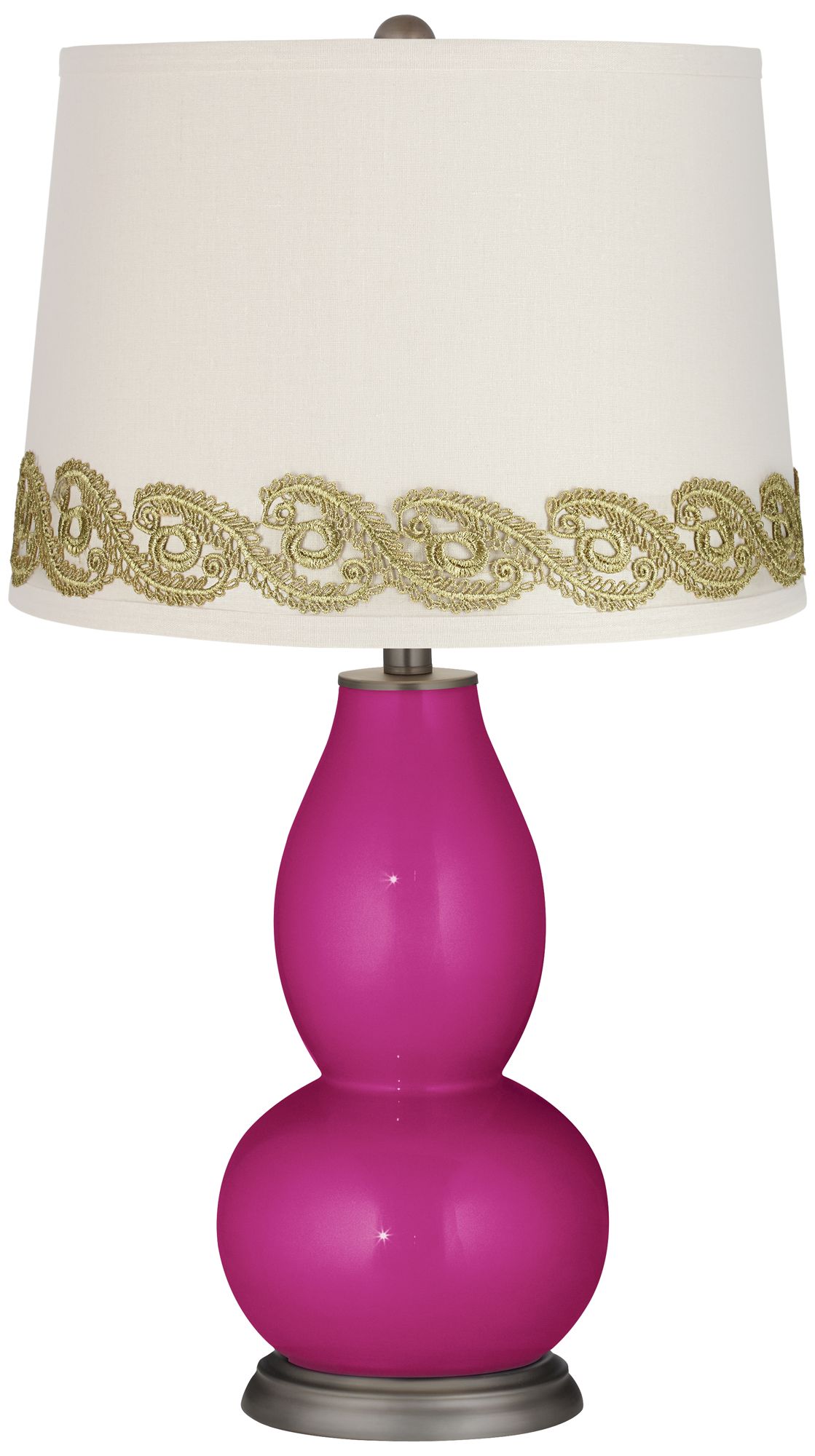 Fuchsia Rose Metallic Double Gourd Lamp with Vine Lace Trim