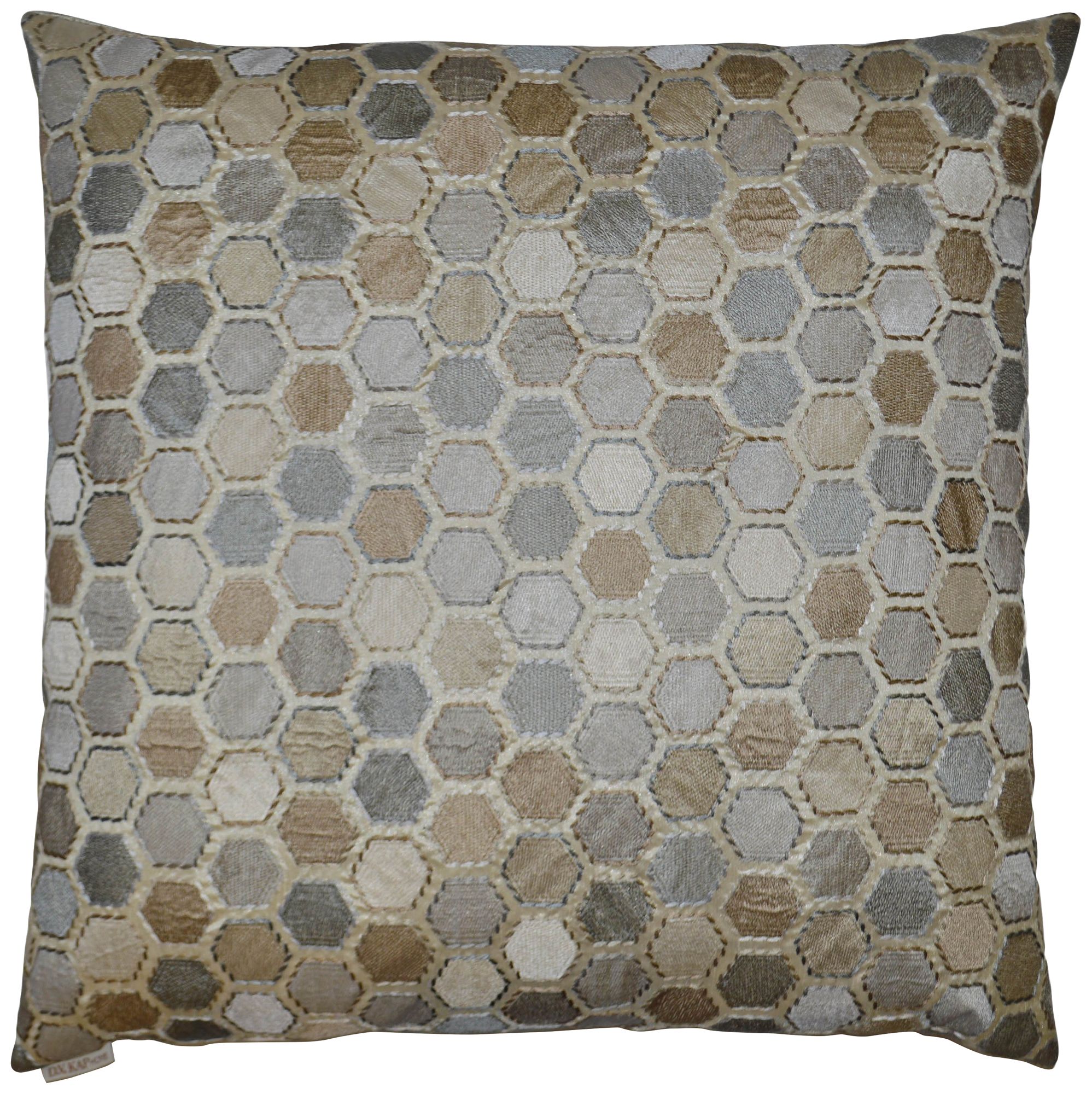 An American-made design, this transitional square alabaster decorative throw pillow features a zippered and conveniently removable geometric cover filled with a plush feather down insert.