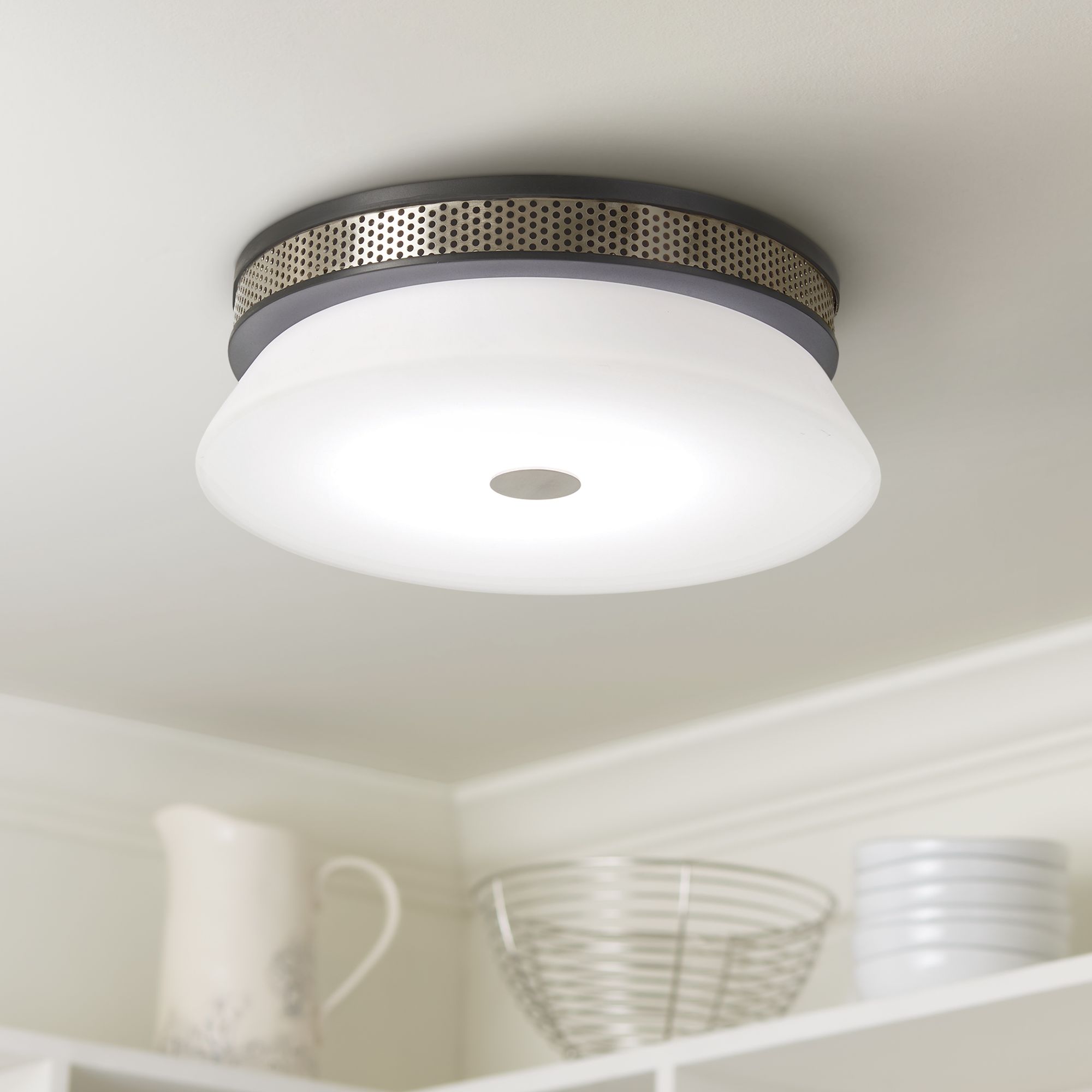 - Stylish industrial flushmount LED ceiling light from the Tauten collection by George Kovacs.